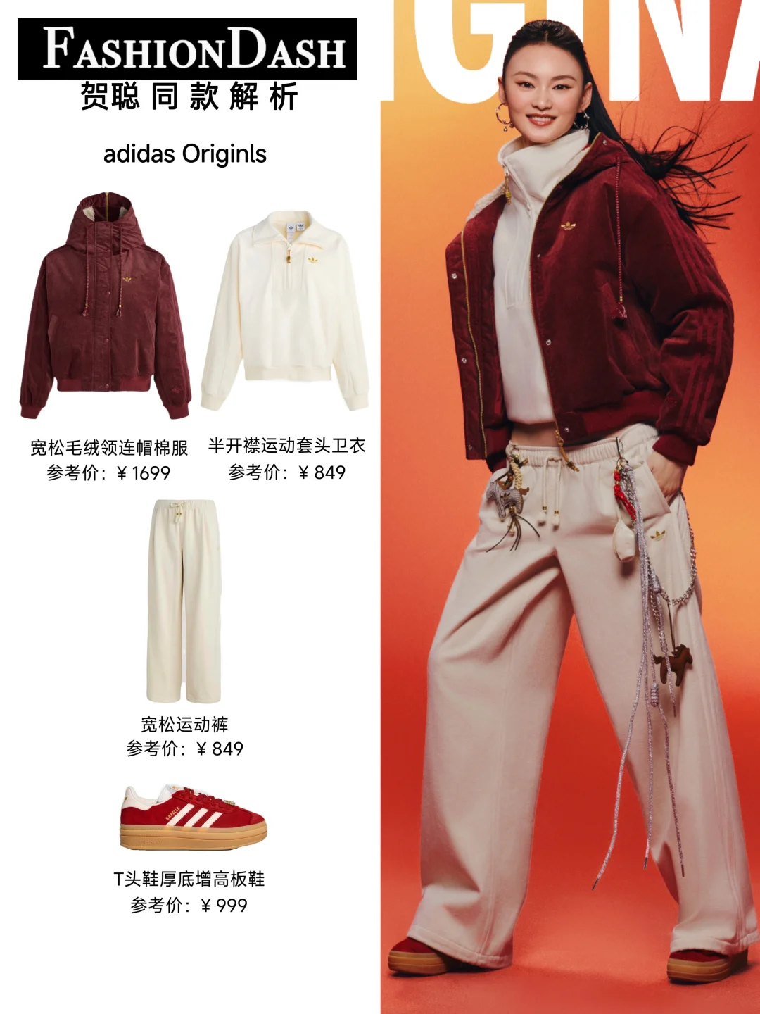贺聪:复古棕红系穿搭蛮有质感,羊羔绒外套配百褶过膝裙,或是酒红绒面棉服搭白色运动套装,细节处的红色T头鞋点睛,新年氛围感直接拉满~