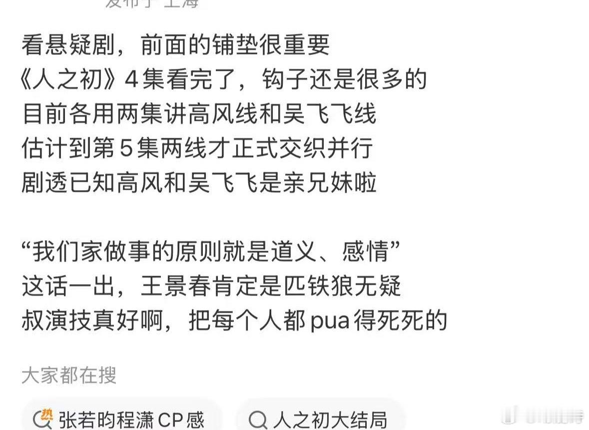 人之初首播观后感 和网友们一起追剧就像在开线上剧本杀!大家从不同角度分析线索,有