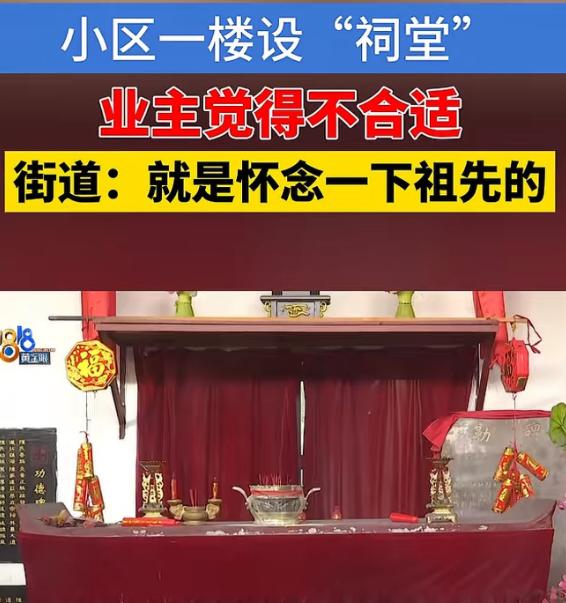 浙江宁波,女子一直以为自家楼下的3间商铺开的是医馆,后来她发现不对劲了,商铺里面不仅有牌位,还有人过来祭祖,才知道开设的是祠堂。女子不干了,认为这个地方人来人往,将祠堂开设在这里,影响自己的生活,于是,找到街道讨要说法。街道负责人称,就是祭拜一下祖先,没搞白事等封建迷信活动。女子对此还是不能接受,找来媒体曝光此事,让网友给评评理。   住在浙江宁波某小区的李女士(化名)最近被楼下的商铺闹得心烦意乱,原本以为是便民医馆的地方,没想到竟是供奉牌位的祠堂,这让她实在无法接受。   李女士说,楼下的三间商铺装修时,她一直以为是要开医馆,毕竟小区周边人来人往,开医馆也算是方便居民。   可装修完后,她发现这里的情况有些不对劲,不仅没挂出医馆的招牌,反而经常有陌生人进出,而且进去的人都神情肃穆,手里还提着类似祭祀用品的东西。   出于好奇,李女士特意留意了一下,这才发现商铺里竟然摆放着不少牌位,还有人在里面焚香祭祖。   直到这时她才明白,自己楼下根本不是什么医馆,而是一处祠堂。   “这地方每天人来人往,还有不少老人小孩路过,把祠堂开在这里也太不合适了。”李女士说,祭祖时的焚香气味会飘到楼上,而且时不时传来的祭拜声,也严重影响了她的正常生活。   心里不舒坦的李女士,第一时间找到了街道办事处讨要说法。   面对她的质疑,街道负责人表示,这里确实是用于祭拜祖先的,但只是简单的祭祀活动,并没有举办白事之类的封建迷信活动,让她不用过度担心。   可这样的回应并不能让李女士满意,在她看来,不管有没有办白事,祠堂本身就不适合开在居民楼下的商铺里。   “说白了,祠堂是祭祀祖先的地方,氛围本来就比较肃穆,开在小区里难免会让居民心里不舒服,而且焚香还可能有消防安全隐患。”为了维护自己的权益,李女士找来媒体曝光了此事,希望能让网友们给评评理。   其实这事搁在谁身上都可能有意见,一边是宗族祭祀的传统需求,一边是居民正常的生活权益,怎么平衡确实是个难题。   从规定来看,不管是建祠堂还是改变商铺用途,都得经过正规的审批手续,符合城乡规划和相关管理要求。   像这种把商铺改成祠堂的情况,首先得确认是否经过了审批,有没有违反相关规定。   有了解相关情况的人说,宁波当地确实有不少宗族祠堂,但大多都经过了规范管理,有的甚至被打造成了文化场所。   但这前提是不能影响周边居民的生活,毕竟小区是大家共同生活的地方,不能只考虑一部分人的需求而忽略其他人的感受。   现在李女士的诉求很简单,就是希望能妥善处理楼下的祠堂问题,还自己一个安静正常的生活环境。   至于这件事最终会如何解决,是祠堂搬迁还是采取其他整改措施,目前还没有明确的结果。   这事也引发了不少人的讨论,有人觉得应该尊重传统祭祀文化,只要不搞封建迷信、不影响他人就没问题;也有人支持李女士,认为居民楼下确实不适合开祠堂,容易产生矛盾。   对此您有什么不同的看法,可以在评论区留言讨论!!!