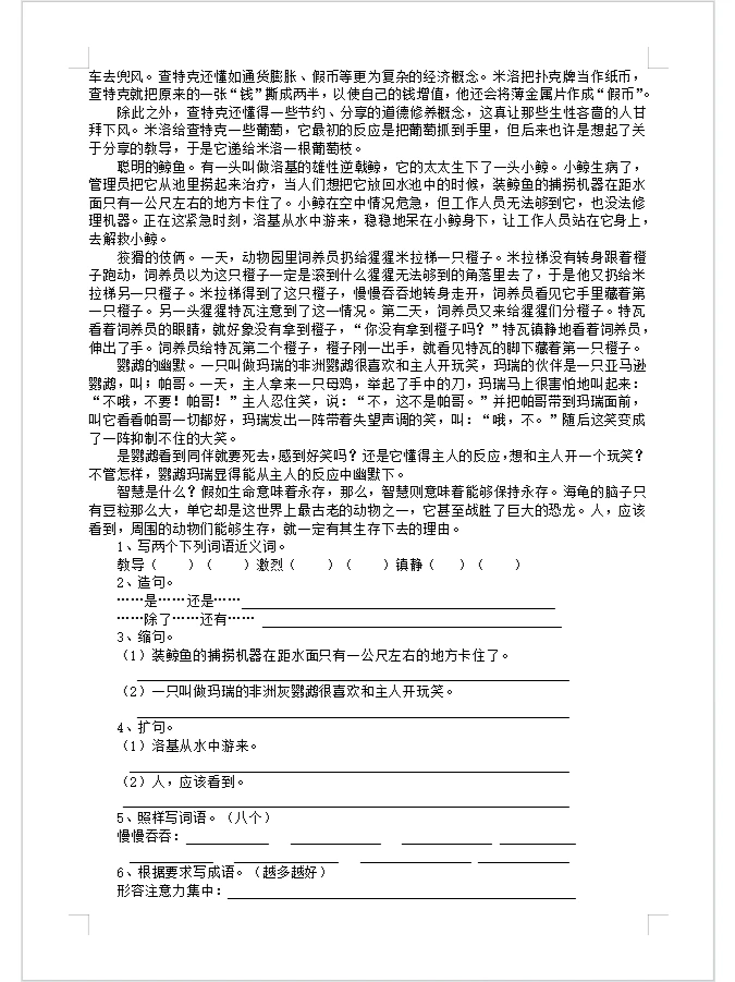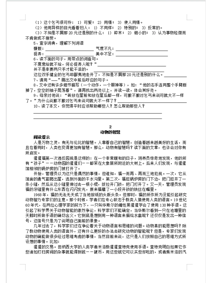 语文阅读练习五年级20篇