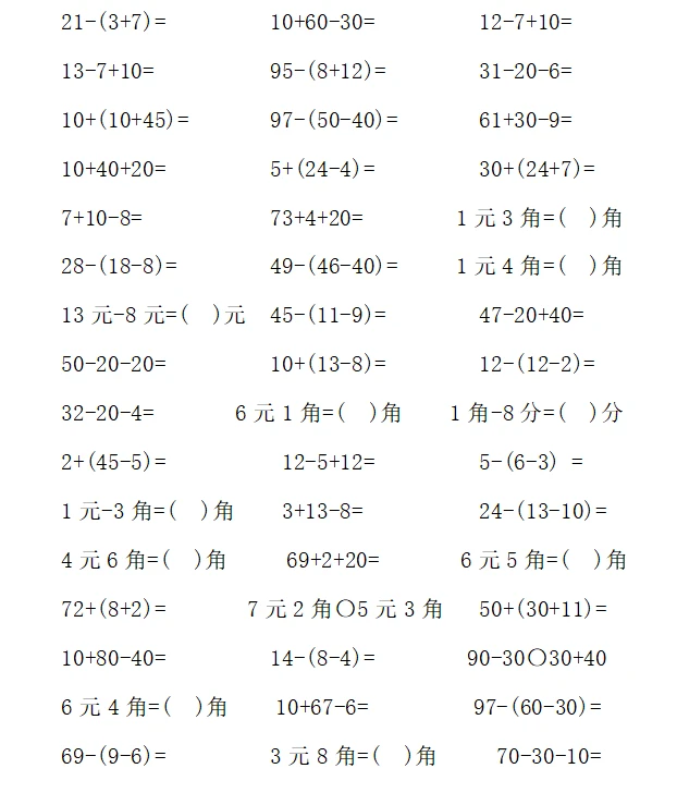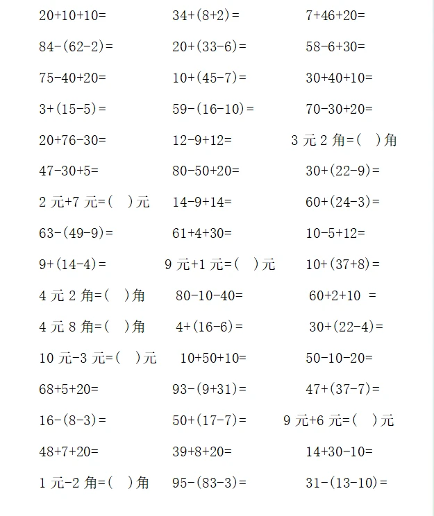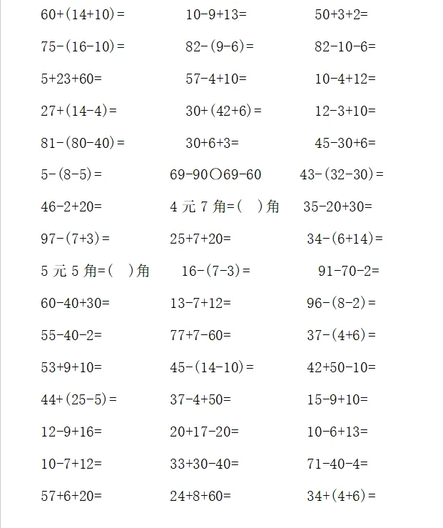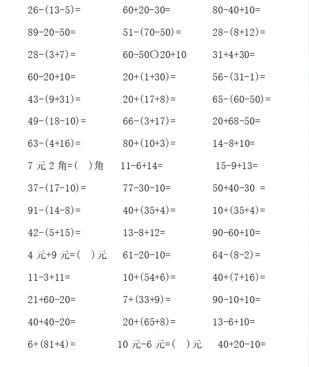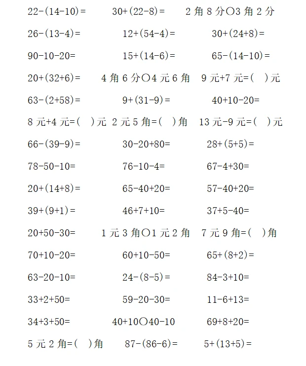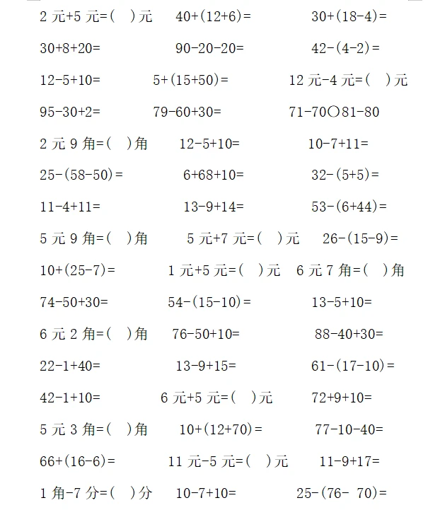 一年级计算1000题—⑤