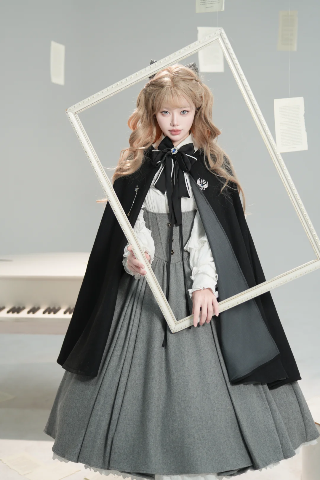 鱼骨羊毛裙模特图,后面有带斗篷的图lolita原创设计 lolita Lolita 吃我一波lolita安利 小裙子 英伦风