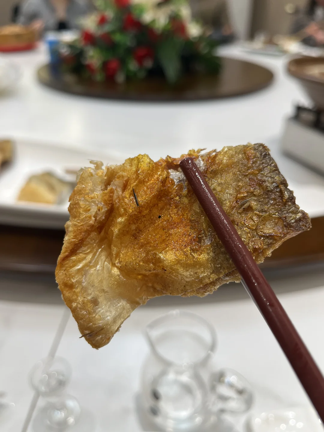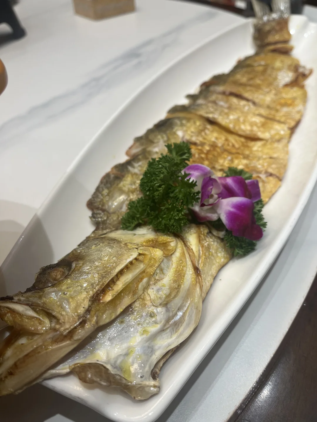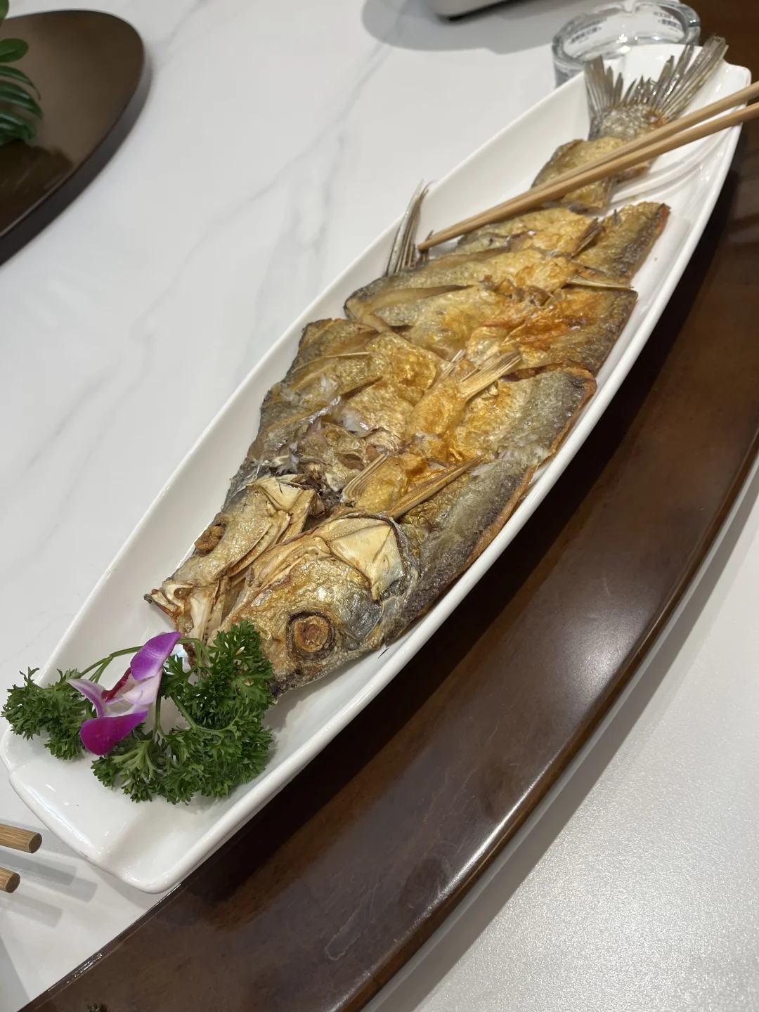 荆楚宴的阳干鱼有一个系列,鲫鱼、鳜鱼、刁子鱼、青鱼,鳡鱼。前几种鱼市面上较常见,鳡鱼大概江城市面上少有,土鲫鱼虽小,可装盘后成叠状,像暗夜中的美人眼镜,一闪一闪亮晶晶。我喜欢欧美电影的插曲《The Night Has a Thousand Eyes》,“And if this world starts getting you down/There's room enough for two up on the roof……”