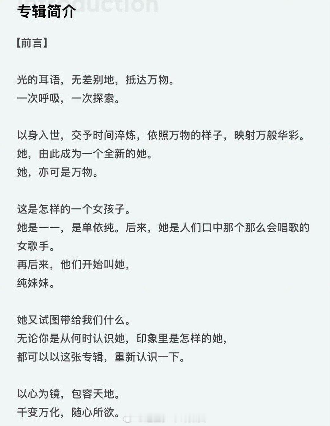 单依纯二专首首都是主打 循环《纯妹妹》,最大的感受是“奢侈”。十首歌,每一首都拥有“主打歌”级别的制作诚意与情感浓度。单依纯没有保留任何才华,将她对音乐的全部热爱与思考,毫无保留地灌注在了每一个音符里。