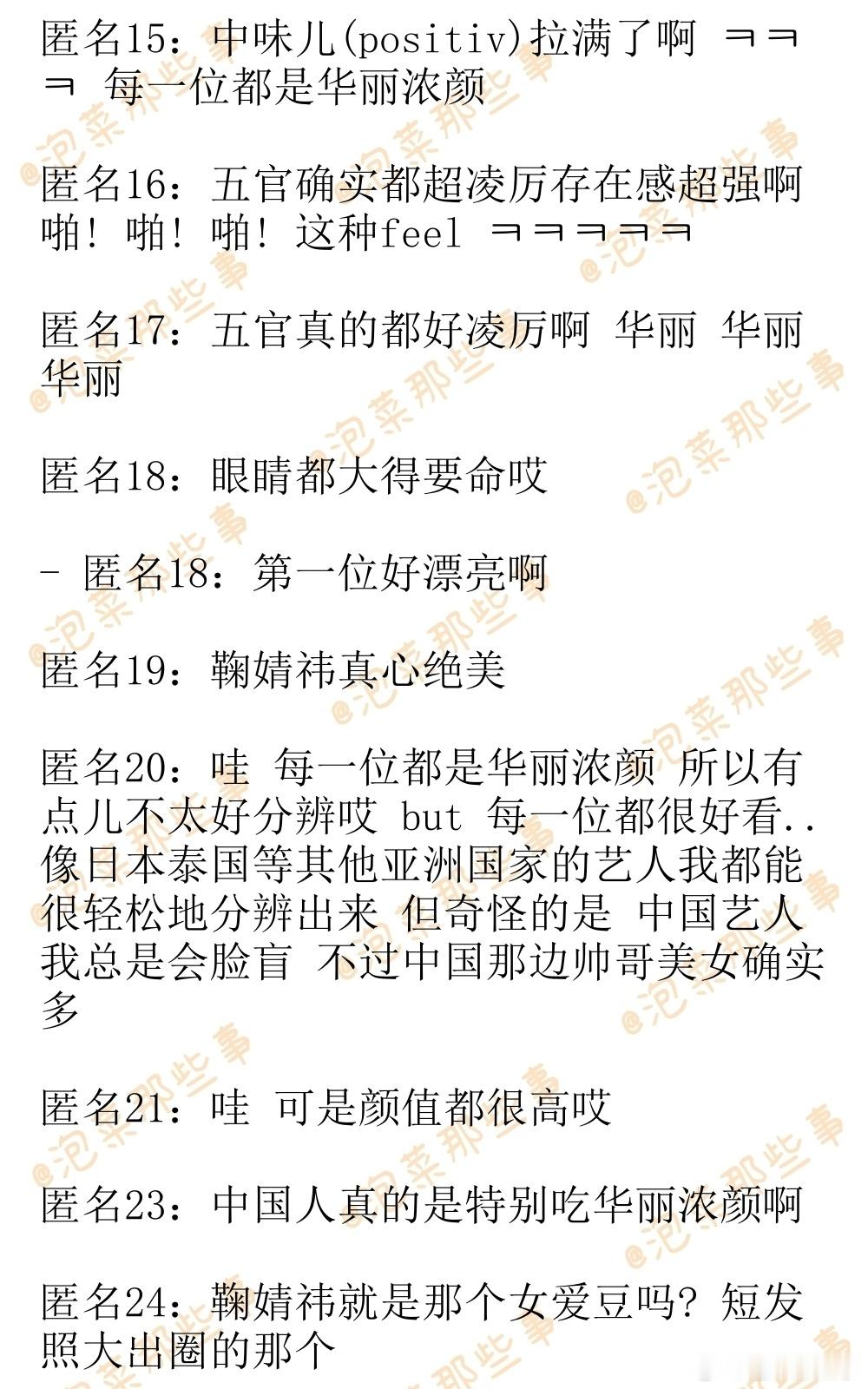 🔥韩网热帖评论翻译🔥中国颁奖礼艺人们全都是华丽大浓颜哎韩网原帖帖主称:中国颁