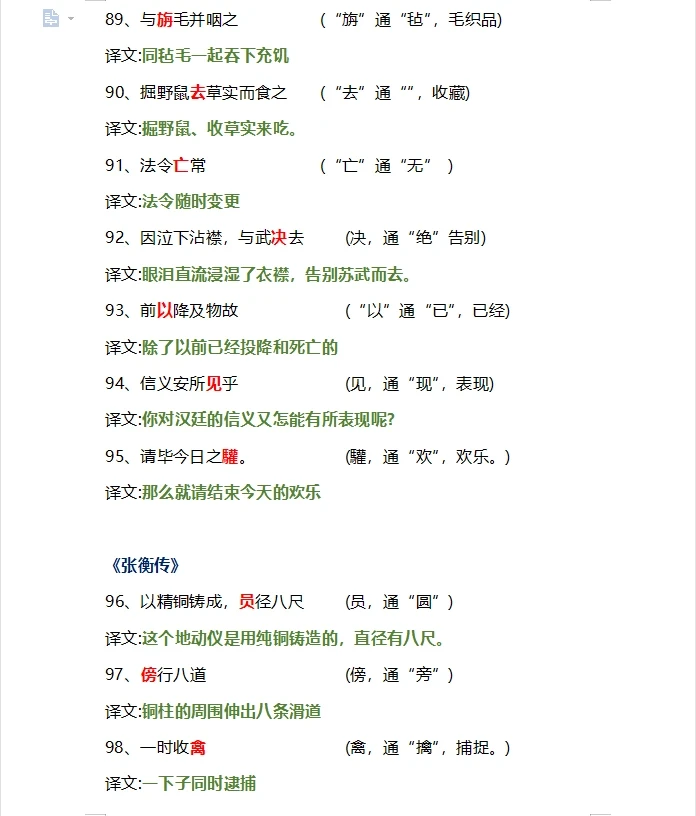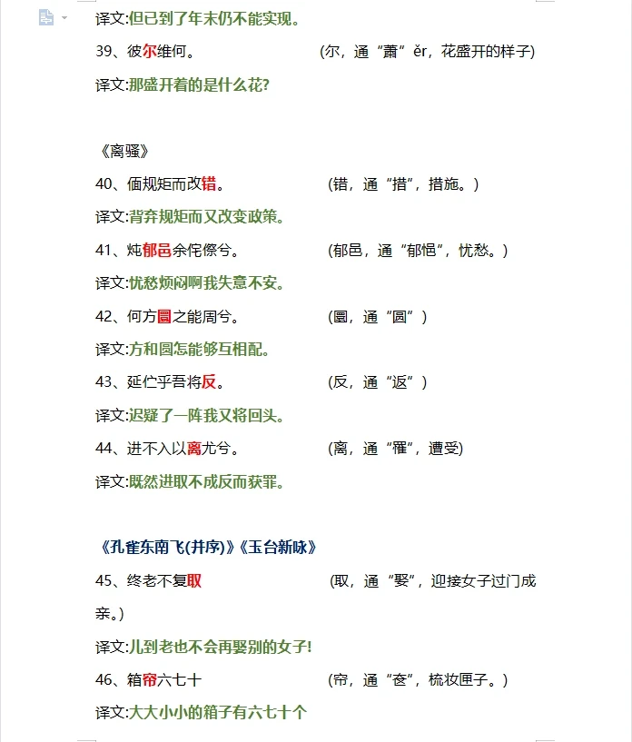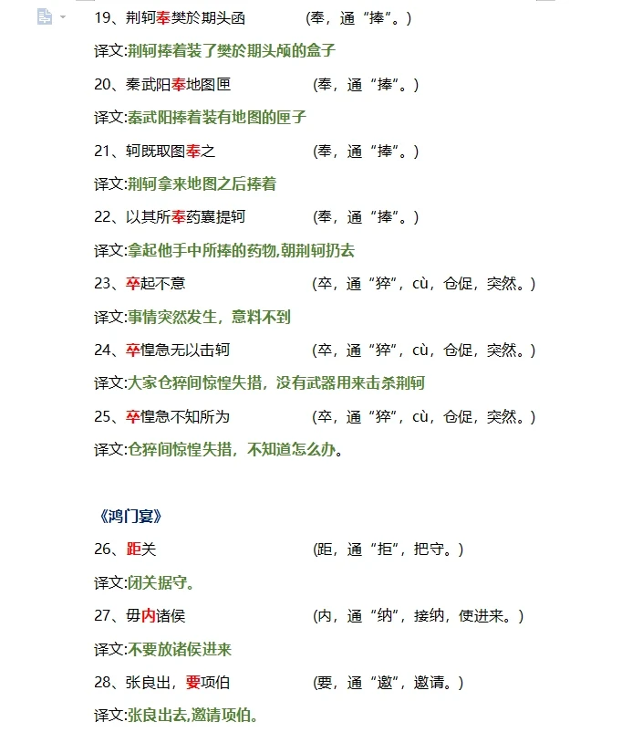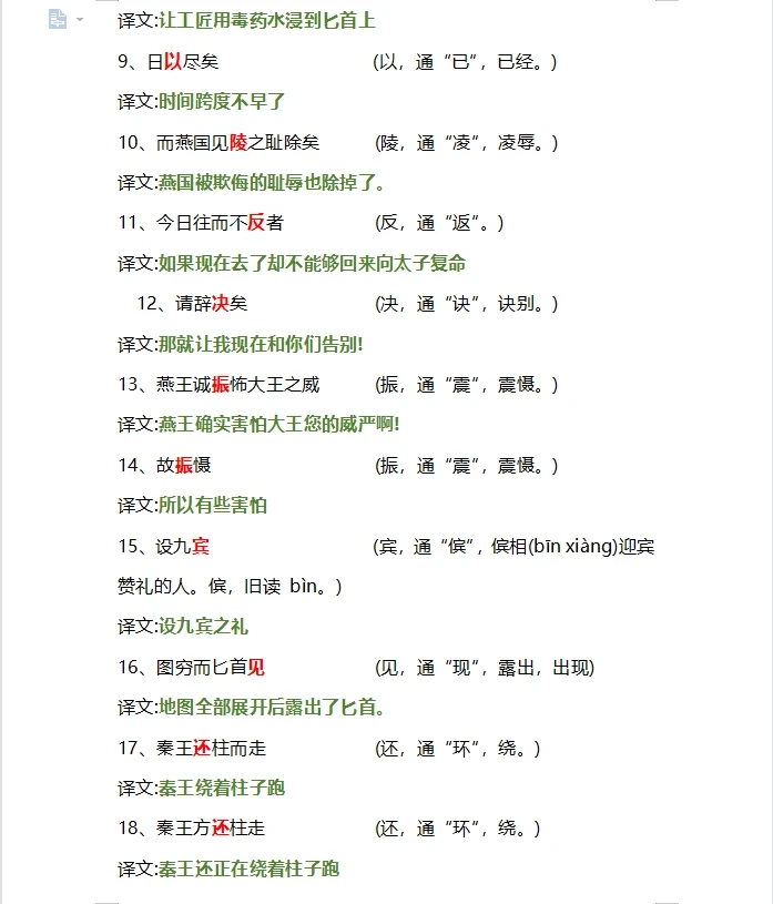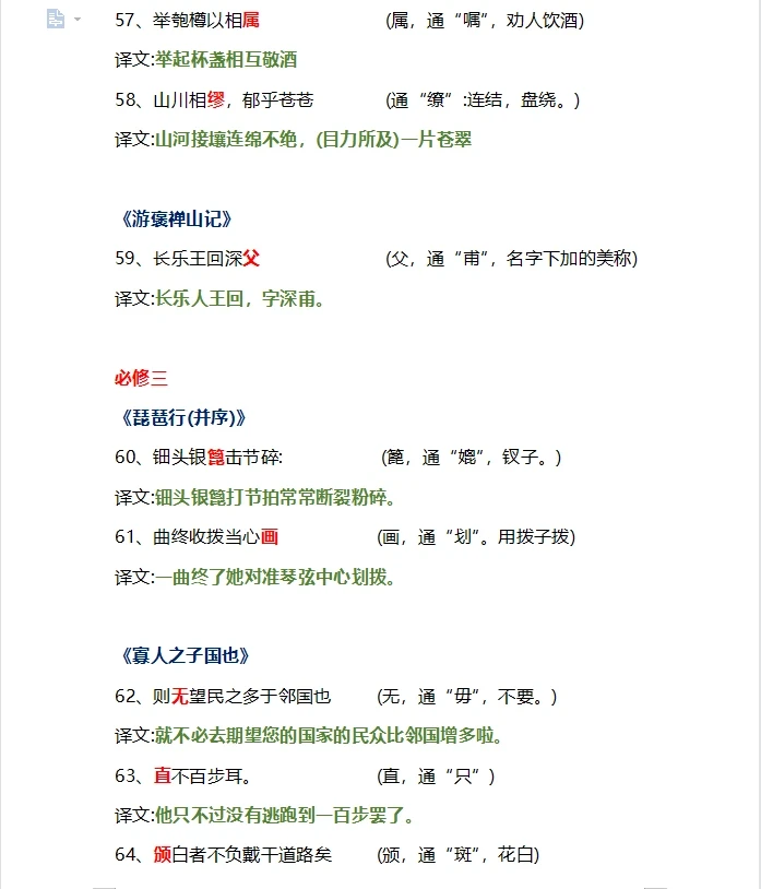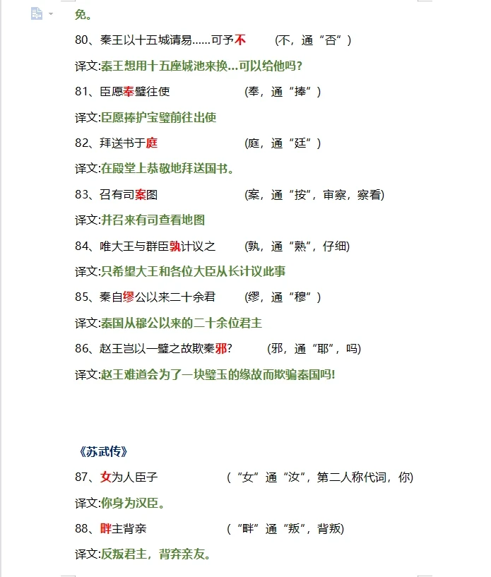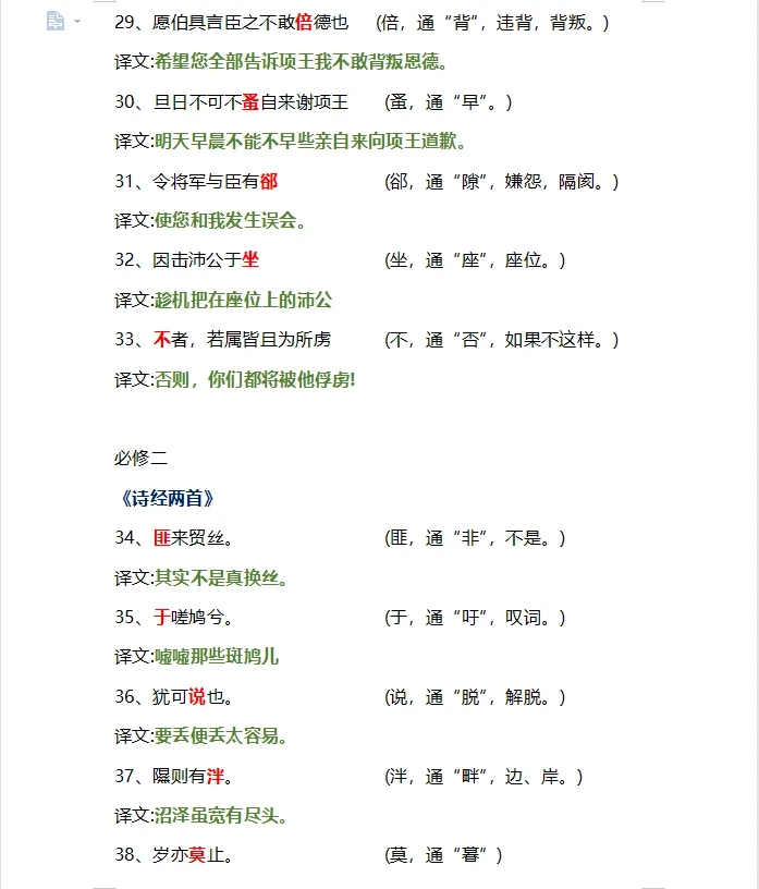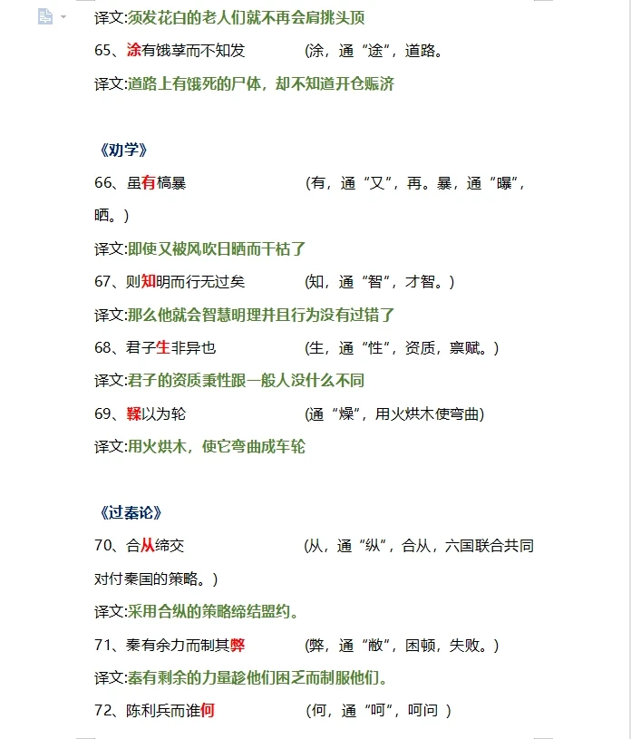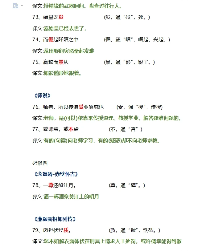 高中文言文翻译通假字