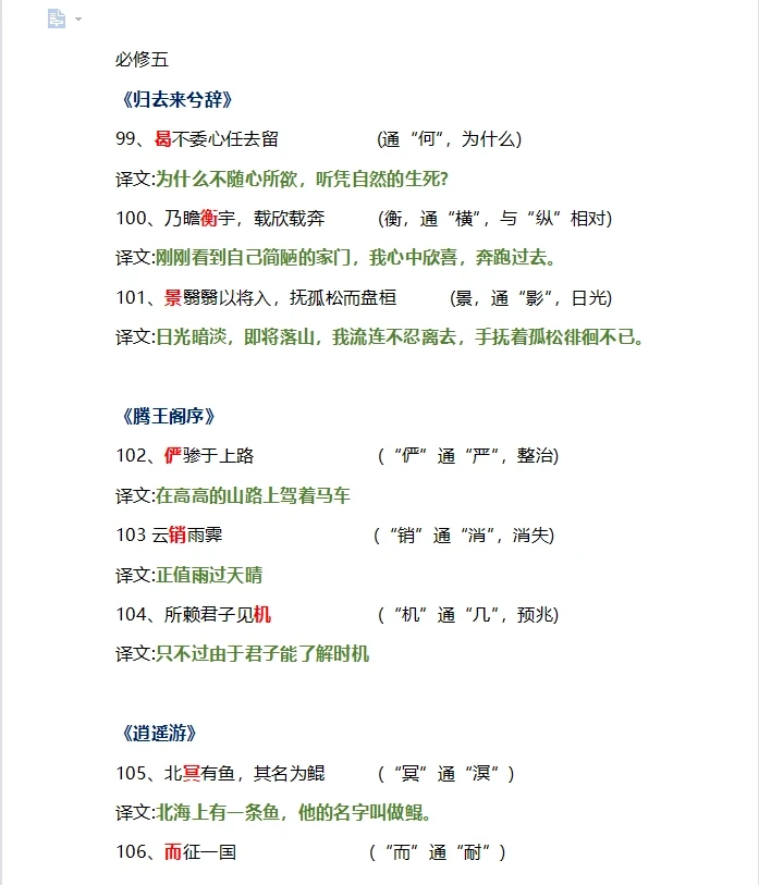 每秒都值得记录 文言文 语文 高中语文文言文 文言文通假字 学习 高中语文