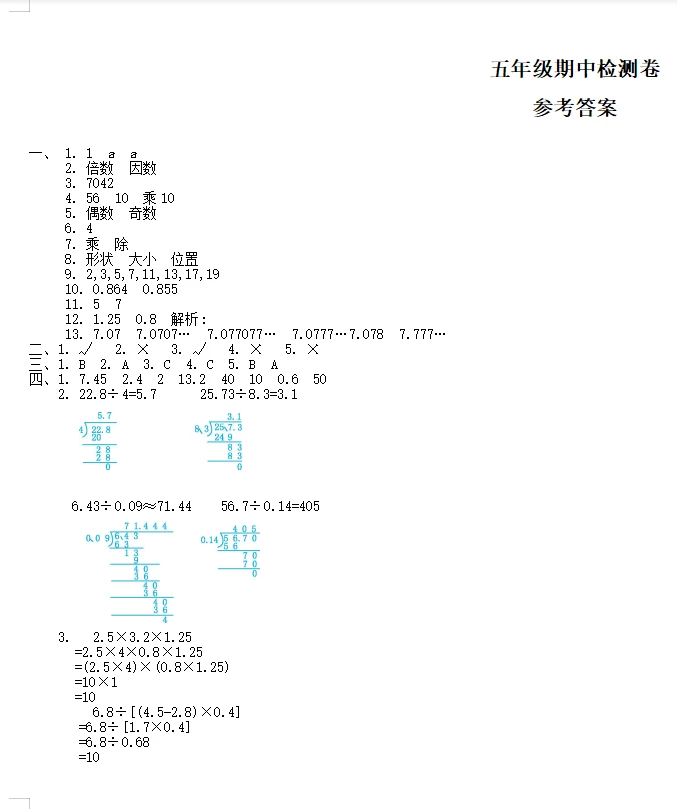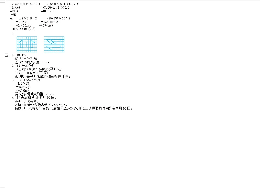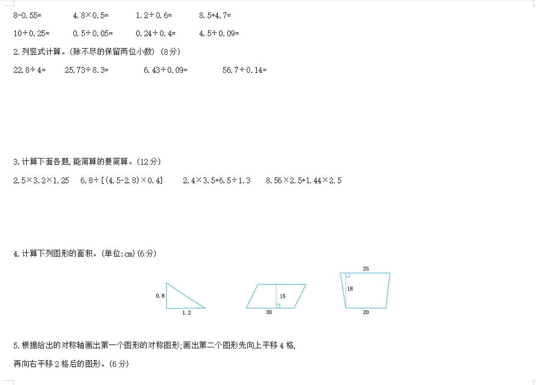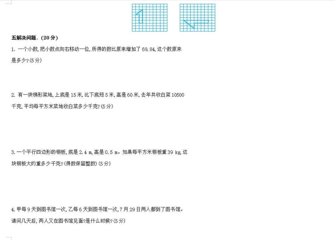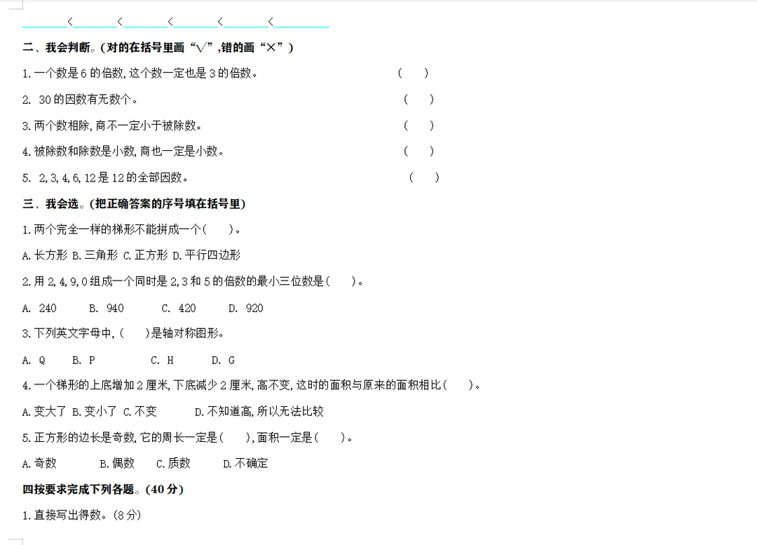 学习 数学 试卷 五年级数学