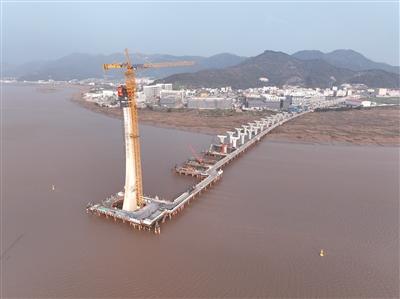 温州网讯12月25日下午4点30分,随着最后一斗混凝土在吊机的精准输送下缓缓浇筑入塔顶,甬台温高速公路复线瑞安联络线(瑞湖高速)关键控制性工程——飞云江1号特大桥108米高主塔顺利完成封顶。这标志着大桥建设全面进入上部结构施工阶段。