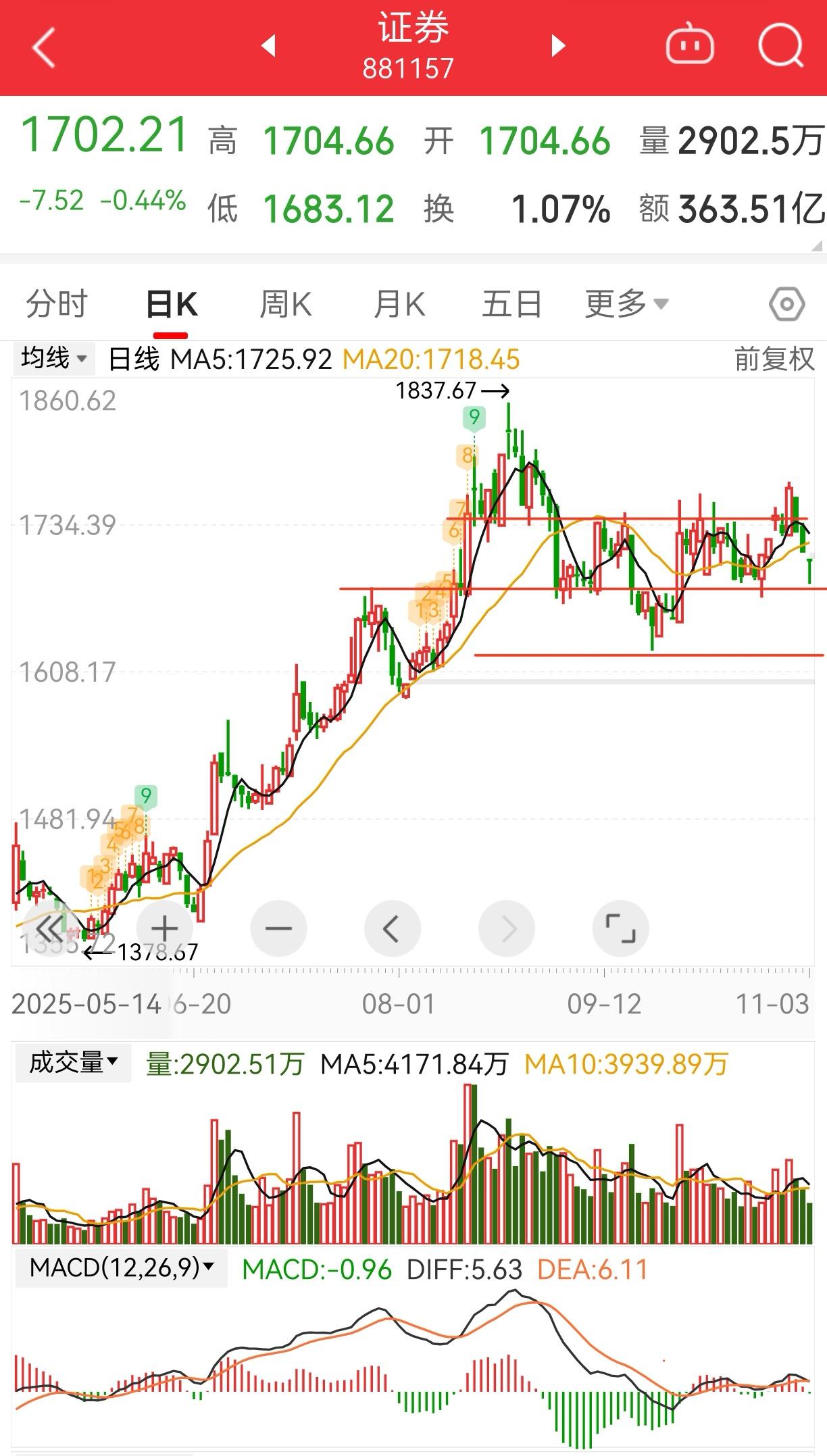 证券板块真“渣男”体质! 上周四刚放量突破压力位,周五就一根阴线全吐了回去。不过今天精准回踩第一道支撑,倒是个不错的加仓点。 但如果跌破,那就要看前低和下方缺口那个第二道防线了。真如果跌到了这里,就可以直接加到8成仓了。接下来的走势参考这几天的软件板块。