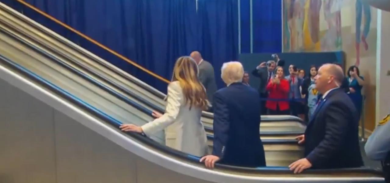 美国总统特朗普出席联合国大会时遭遇“针对”,发言吐槽:我只得到两样坏东西。 特朗普和夫人梅拉尼娅抵达联合国总部后,刚踏上自动扶梯准备上楼,电梯居然停了,在等了一小下仍然没有反应后,特朗普和第一夫妇只能非常尴尬的走了上去。 等到特朗普在大会发言的时候,又突然被告知提词器“坏了”,没办法特朗普只能临场发挥。于是,他在演讲时还不忘吐槽:“我从联合国就得到这两样东西,一部破电梯和一个破提词器。”
