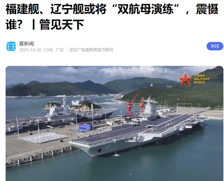 中国国防部宣布了。 12月27日,国防部官方消息确认电磁弹射航母“福建舰”已北上青岛与“辽宁舰”开展编队训练,并表示“福建舰”将在台海进行正常训练,区域警戒又升温了,既展现了我国航母事业的跨越式发展,更彰显了捍卫国家主权的坚定决心。 福建舰的此次行动并非偶然,作为我国完全自主设计建造的首艘电磁弹射型航母,在11月5日正式入列后,仅一个多月就投入编队训练,进度之快令人赞叹。 这艘满载排水量8万余吨的巨舰,最引人瞩目的就是跳过传统蒸汽弹射,直接采用更先进的电磁弹射技术。这种技术不用复杂的蒸汽装置,能在短距离内把飞机加速到起飞速度,不仅推力大、效率高,还能精准调节力道,适配歼-35隐身战机、空警-600预警机等多种舰载机。 此前的海上训练中,多型舰载机已完成多架次弹射起飞和着舰,充分验证了舰机适配性和装备可靠性。而与“辽宁舰”开展编队训练,更是意义深远。 辽宁舰作为我国首艘航母,经过十三年磨砺,早已实现远海训练常态化,积累了丰富的编队协同经验。如今两艘航母并肩练兵,一边是身经百战的“老兵”传经送宝,一边是技术先进的“新锐”实战检验,能快速提升整体作战能力。 训练中,编队还会开展航行协同、舰机联合搜救等多个课目,强化应急处置能力,让两艘航母形成1+1>2的作战效能。而关于福建舰赴台海训练,国防部早已明确表态:这是正常的军事训练,今后还会根据需要继续组织。 台湾是中国领土不可分割的一部分,在自家海域开展练兵备战,完全正当必要、合理合法。 当前,民进党当局勾连外部势力谋“独”挑衅,美方变本加厉对台售武,这些行径严重破坏台海和平稳定。解放军在台海周边常态训练,就是为了震慑“台独”分裂势力,应对外部干涉,守护国家领土完整。 我国一贯坚持防御性国防政策,航母训练不针对任何特定国家和目标,核心目的是提升维护国家主权、安全、发展利益的能力。 从辽宁舰到山东舰再到福建舰,我国航母事业用十三年时间实现了从改造续建到自主研发、从滑跃起飞到电磁弹射的三大飞跃,背后是国家科技实力和综合国力的全面提升。 此次福建舰与辽宁舰编队训练、台海练兵,既是对装备性能的实战检验,也是对国防力量的公开展示。国防部的官宣铿锵有力,传递出清晰信号:解放军全时待战、随时能战、战之必胜,任何“台独”分裂图谋和外部干涉行径,都注定会遭到失败。 国家的主权和领土完整,从来都是靠强大的国防力量守护的。福建舰的每一次训练,都是在为和平统一筑牢屏障;航母编队的每一次航行,都是在为民族复兴保驾护航。