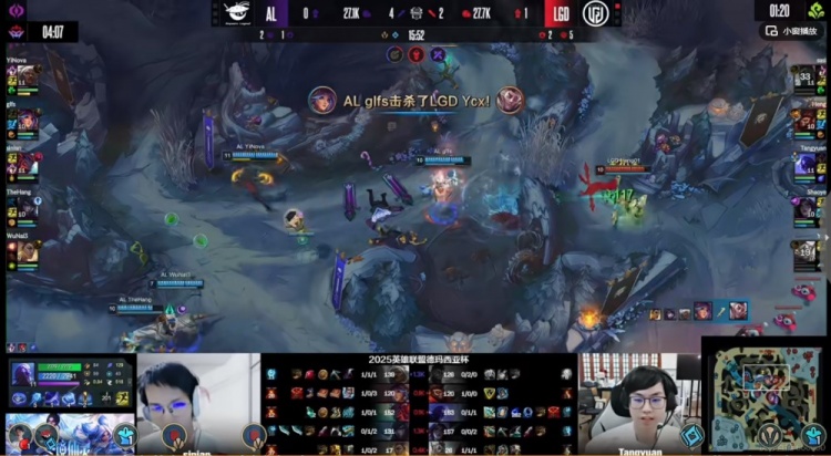 第一局:AL青训们有点稚嫩啊!Tangyuan维克托打出中单教学LGD赢首局