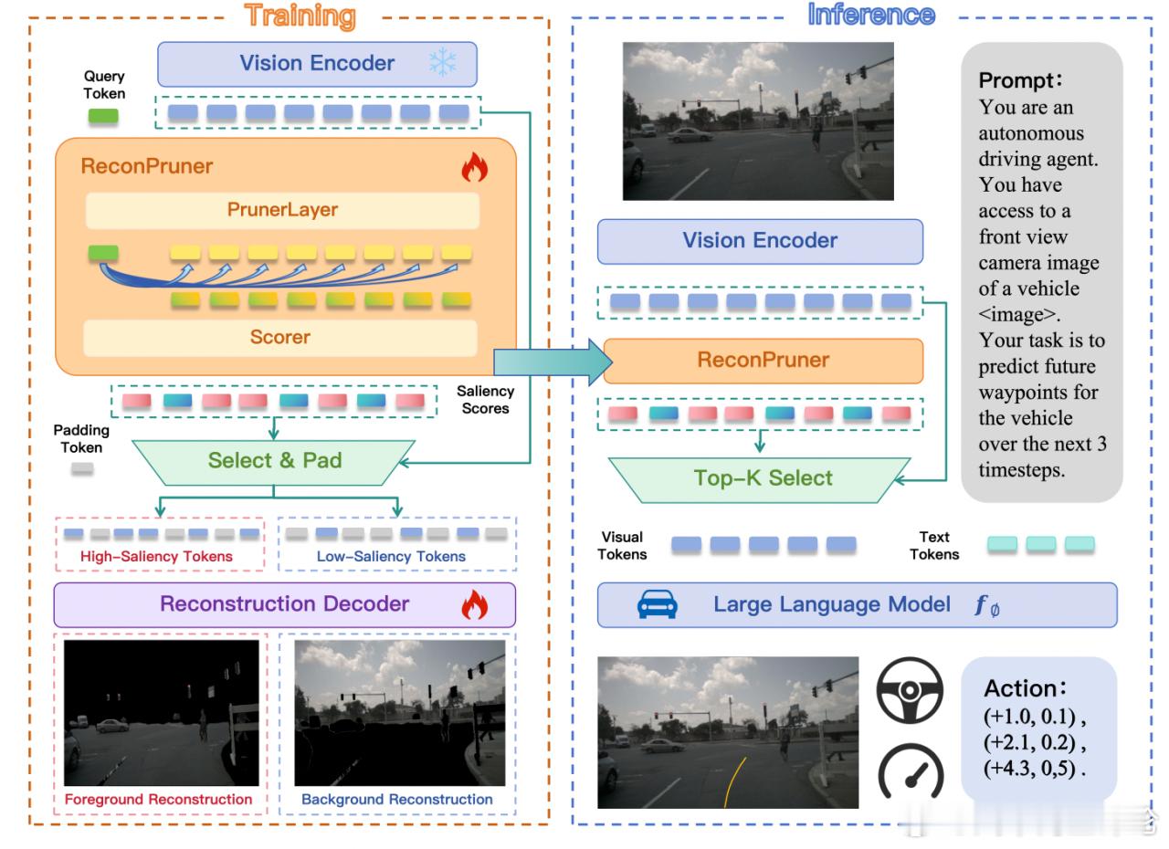 小鹏汽车联合北大提出全新视觉Token剪枝框架近日,AAAI 2026公布了论文录用结果,该会议是人工智能领域的国际顶级会议之一。据悉,AAAI 2026共收到23,680份论文投稿,其中4,167篇论文被录用,录用率仅为17.6%。由小鹏汽车和北京大学计算机学院多媒体信息处理全国重点实验室联合完成的论文《FastDriveVLA: Efficient End-to-End Driving via Plug-and-Play Reconstruction-based Token Pruning》成功入选。这篇论文最大的贡献在于,提出了一种专门为端到端自动驾驶VLA模型定制的、高效的视觉Token剪枝框架——FastDriveVLA。