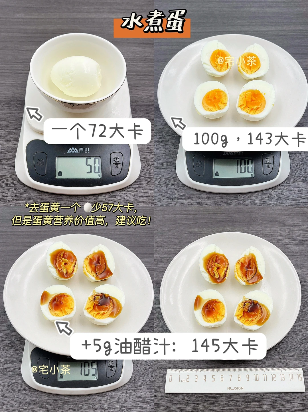 (*去蛋黄一个少57大卡,但是蛋黄营养价值高,建议吃哦~)