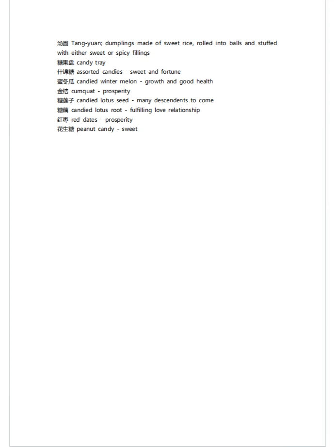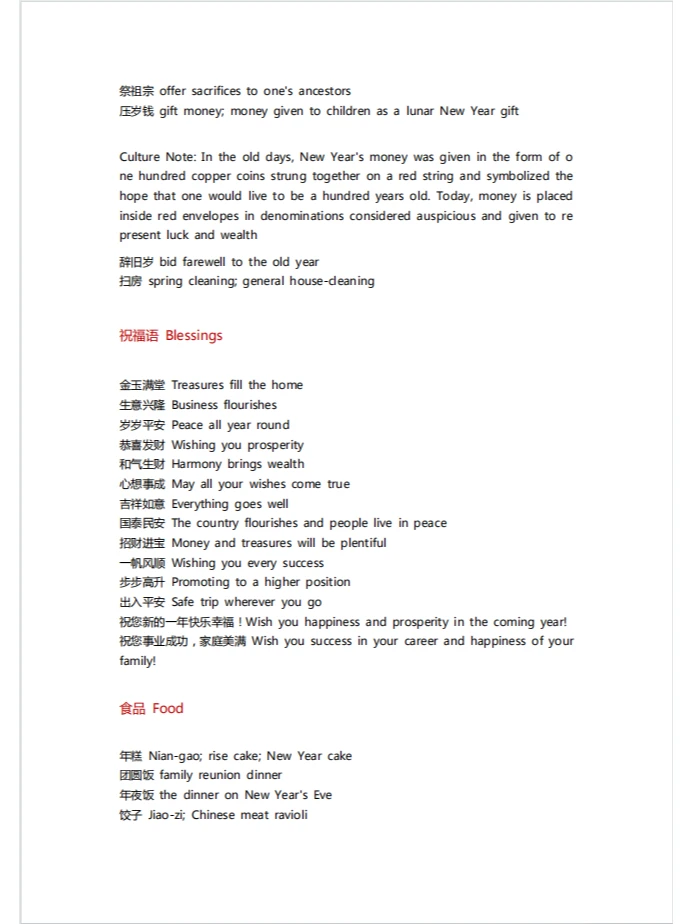 春节英语词汇表