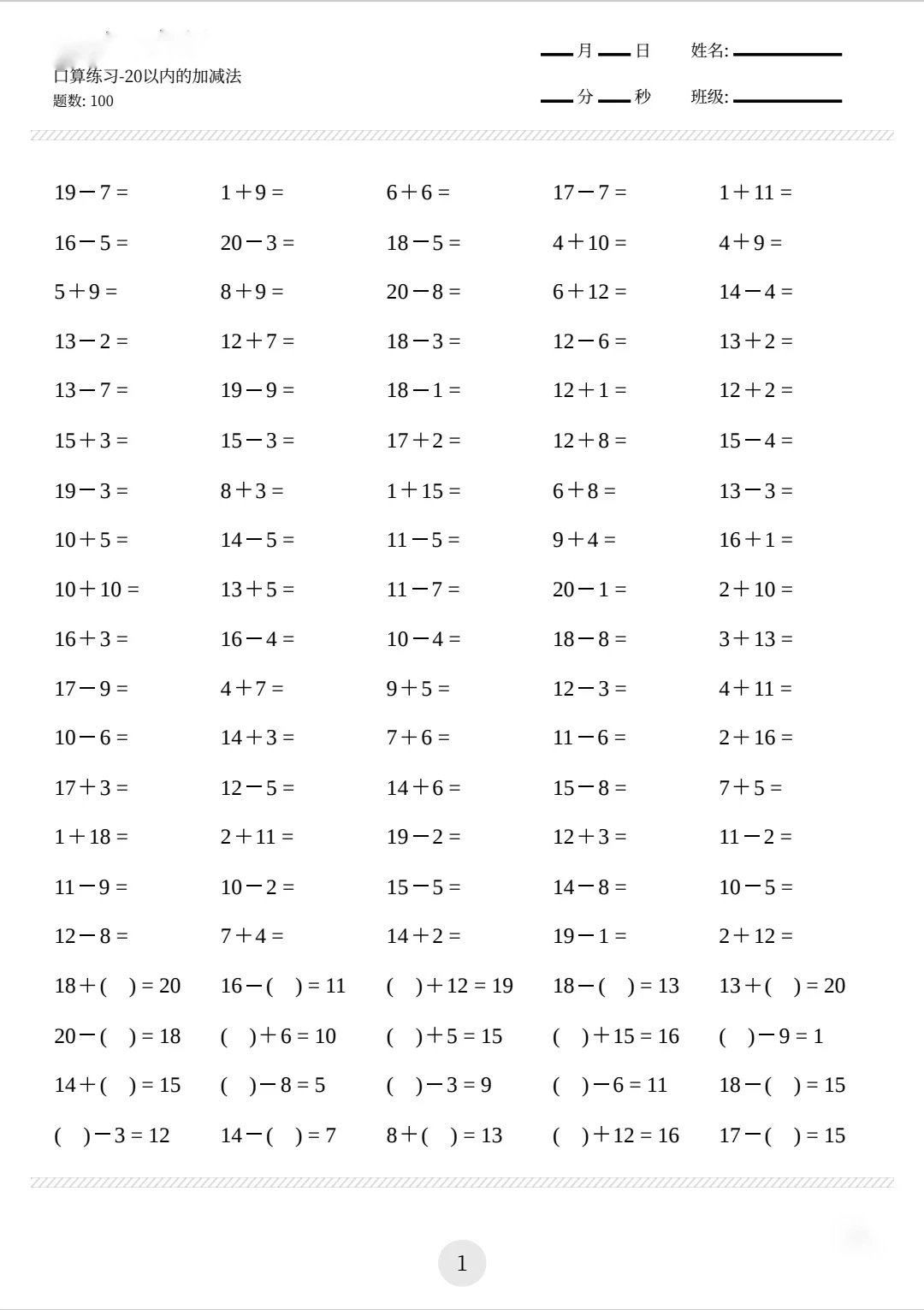 口算 一年级数学 数学口算练习 小学口算 数学 每秒都值得记录