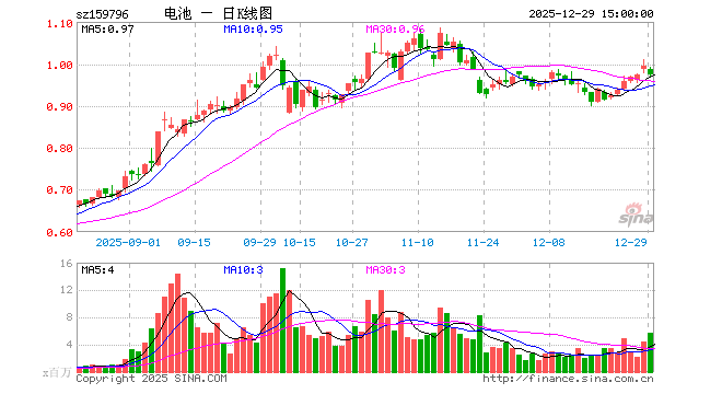 12月29日,电池50ETF(159796)跌2.11%,成交额5.65亿元。当日份额增加9100.00万份,最新份额为94.50亿份,近20个交易日份额增加4800.00万份。最新资产净值计算值为91.98亿元。