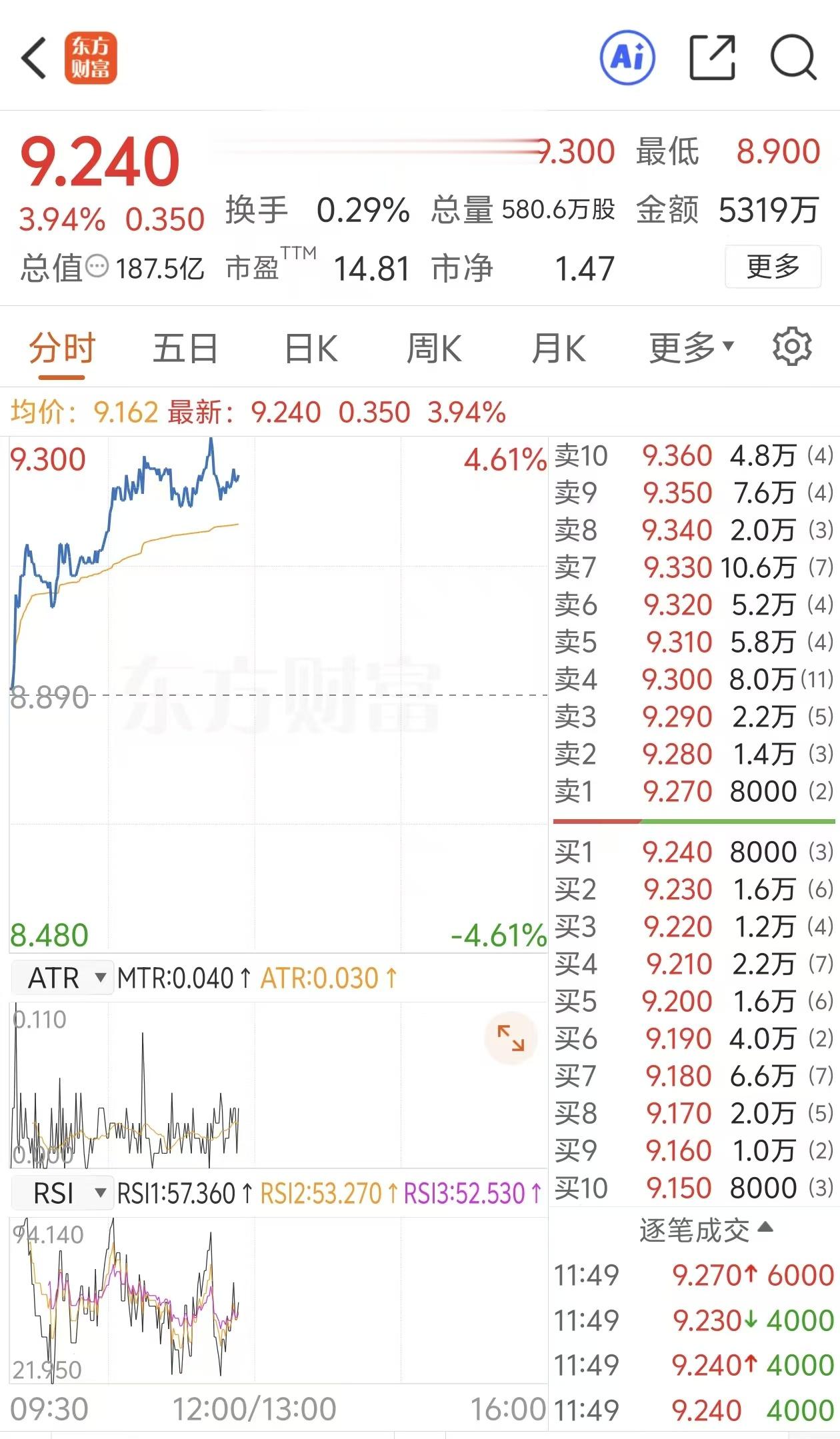 上证报中国证券网讯(记者刘逸鹏)12月30日早盘,中集安瑞科一度涨近5%。截至11时50分,该股涨3.94%,报9.24港元/股。