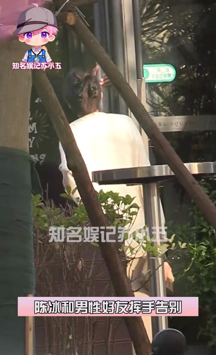 陈冰挺孕肚和男友人喝下午茶陈冰挺孕肚和男友人约会 有娱乐自媒体拍到陈冰挺着孕肚和男性友人喝下午茶,结束后陈冰挥手和男友人告别。娱乐自媒体还问陈冰不怕陈牧驰吃醋吗?