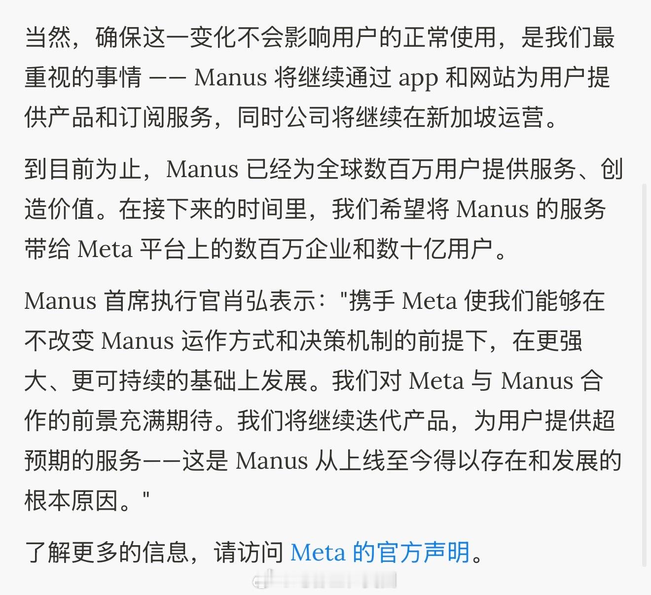 Meta收购人工智能初创公司Manus。Manus海外新鲜事今日焦点