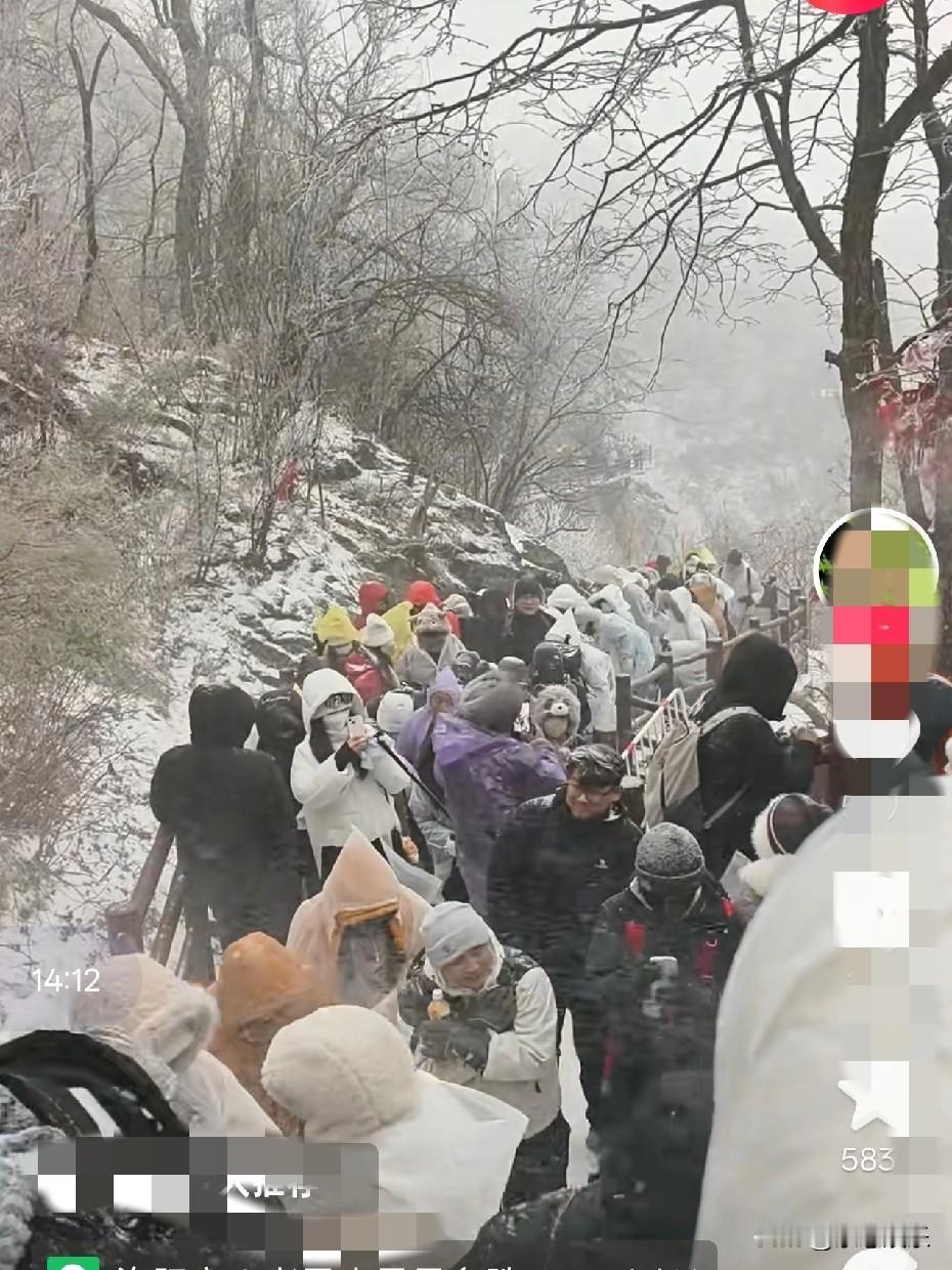 这山非爬不可吗!老君山一下雪,旅游人潮就多了,11月17日老君山大雪过后,那景色太美了。雪白的山林,像老天爷打造的“云顶天宫”,金顶琉璃瓦上堆满积雪,阳光一照如撒碎金,搭配云海宛如画。 人多景美,游客还超有爱。好多疑似南方游客体验完雪景,抢着帮工作人员铲雪,画面十分暖心。不过想去的朋友可得注意,山顶气温能到 -15℃,保暖要做足,冰爪也必带,别赶下午3点后上山,不然索道停运就麻烦咯! 老君山雪景