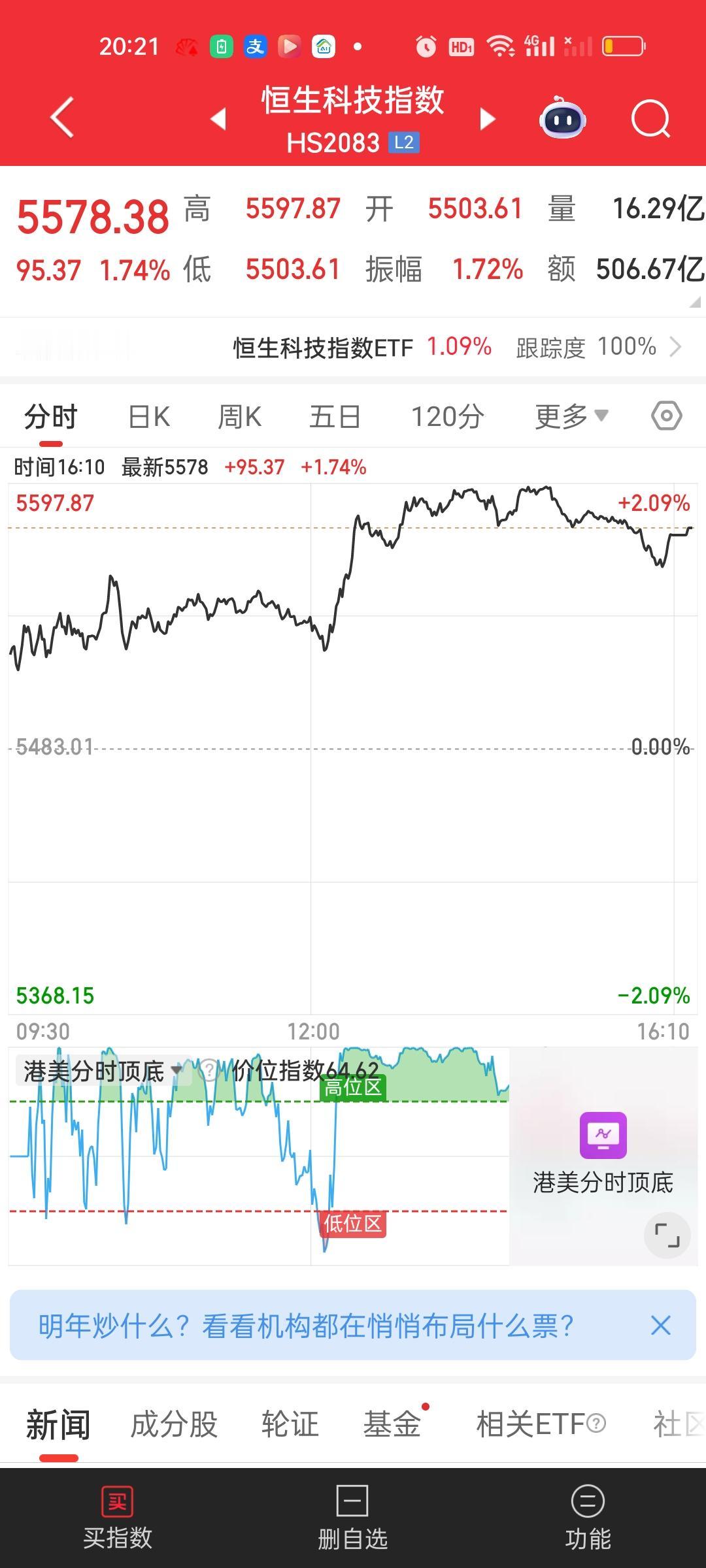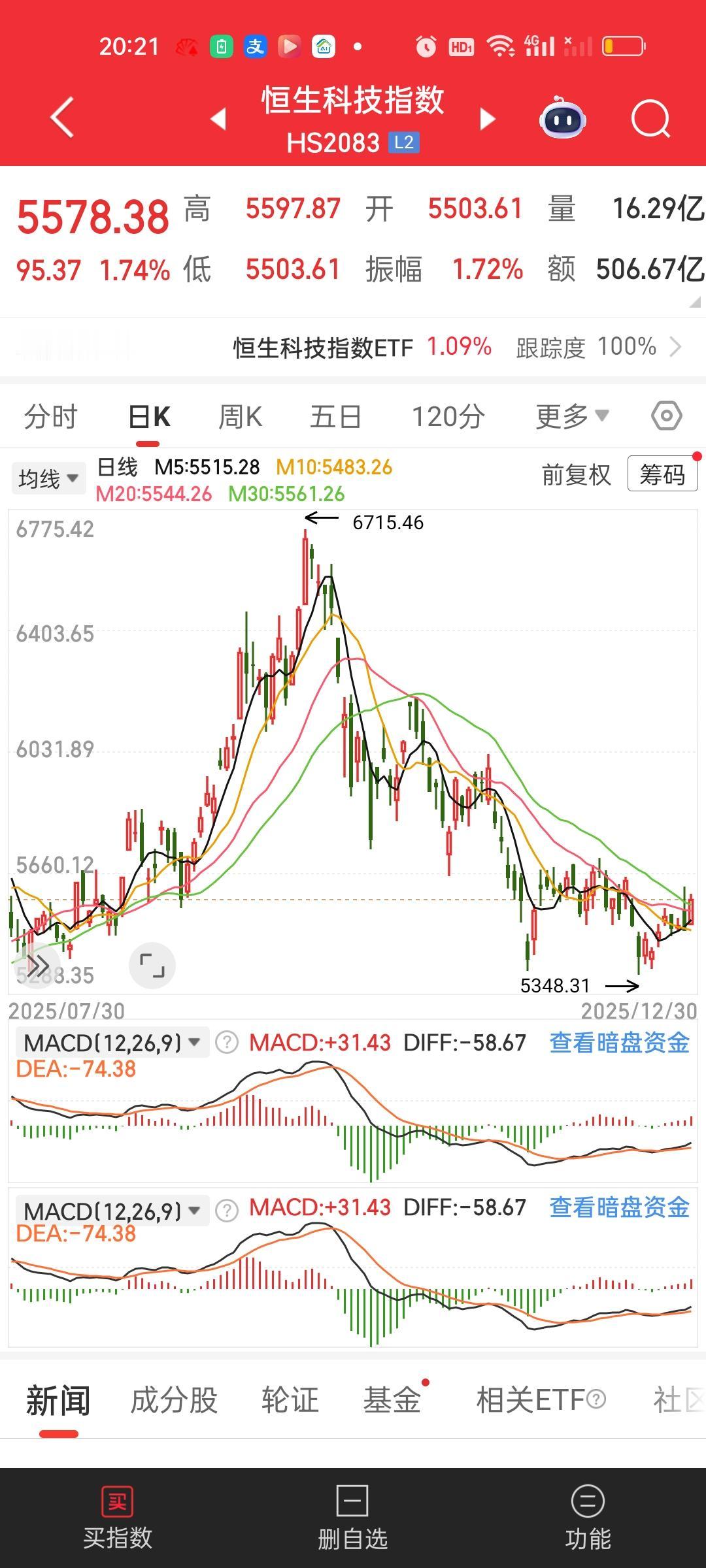 港股收盘算是走了一根阳包阴。恒指收盘站上了所有均线的上方,恒科也也一样,这就是强势的表现,明天还要开盘一天,重点观察一下明天的走势。如果依旧像今天这样强势,我觉得可以加大仓位准备潜伏了!