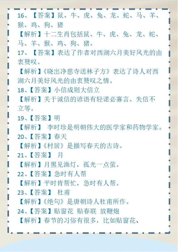 二年级下册文学常识
