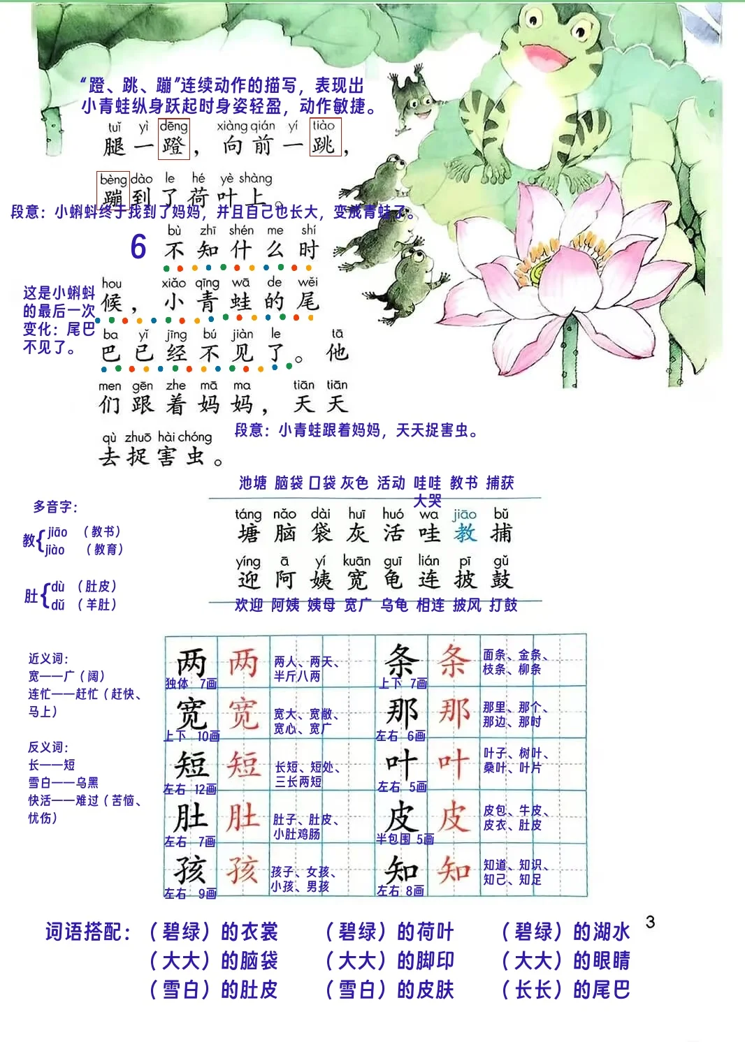人教版二年级《小蝌蚪找妈妈》课堂笔记