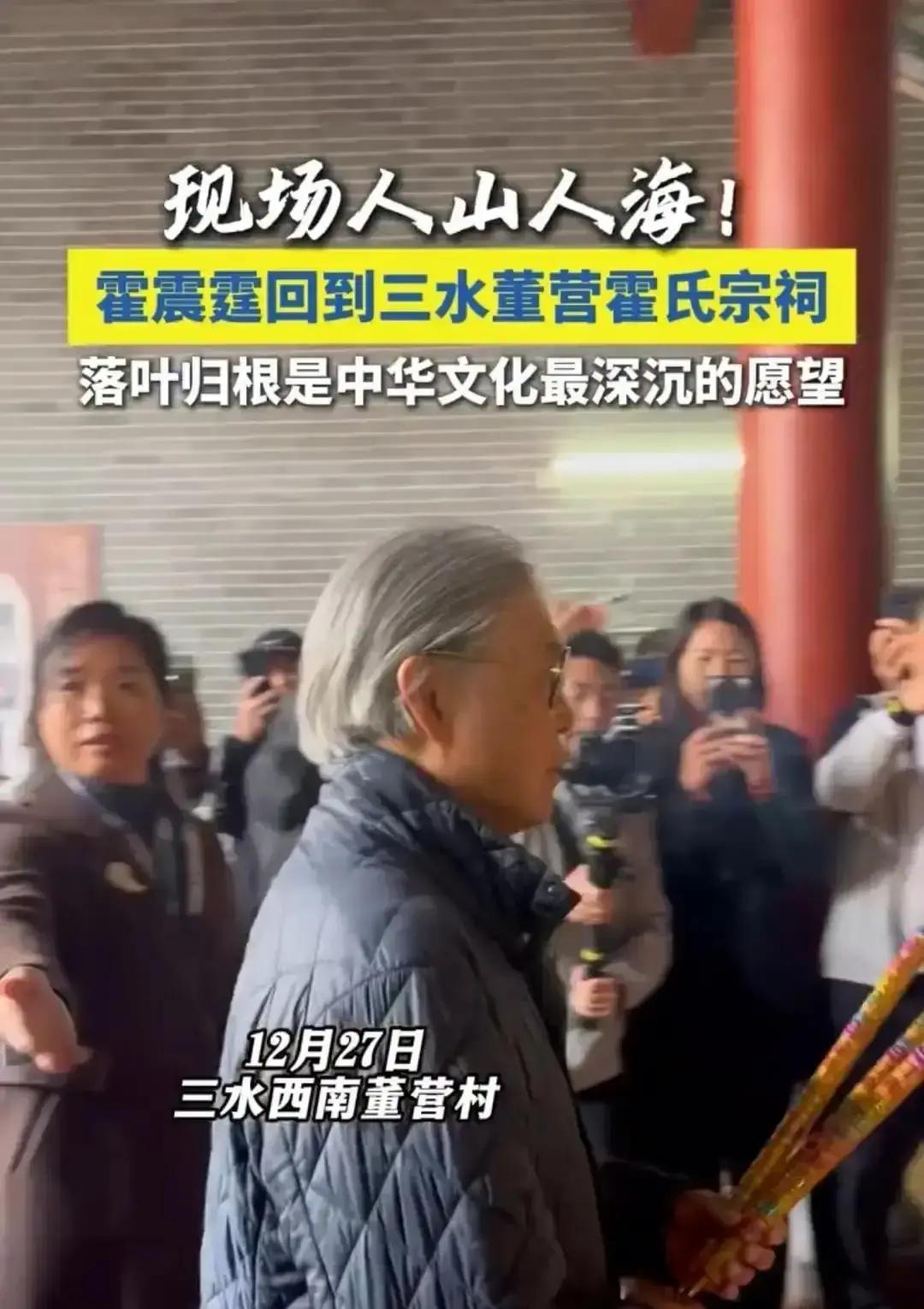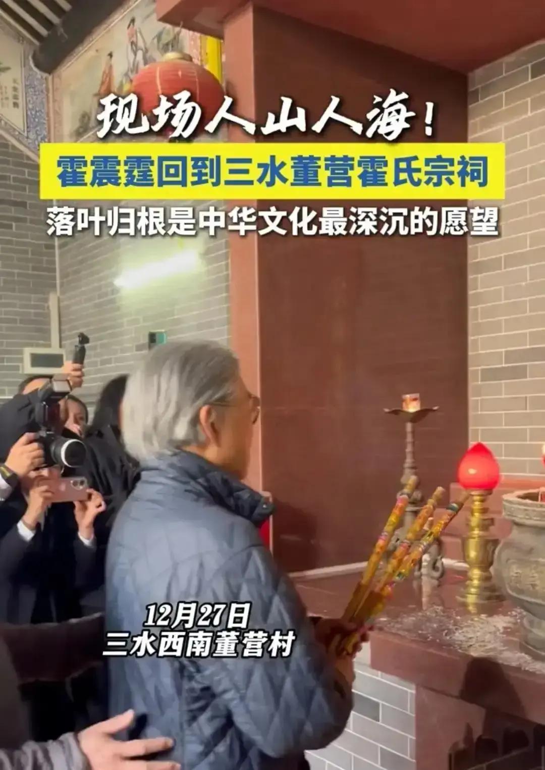 三千万身家挤进祠堂交200块份子钱 霍震霆昨天回佛山三水董营村祭祖,开的是辆旧别克GL8,连司机一共四人,没封路没保镖。祠堂管事的说,他按规矩交了二百块宗亲活动费,排队领香,跟普通村民一起磕了头。 这事听着像段子,可翻翻老账,霍英东2005年重修祠堂时就立了家规:子孙回乡就是族人,不准摆阔。霍震霆这些年确实照做,往年派堂兄弟代祭,今年亲自来,还是那套旧西装,袖口磨得发亮。 村里老人讲,霍家祠堂的捐款碑上,霍英东名字排在第三行,跟普通村民一样大。三千万身家的人,在族谱里照样得按辈分写名字,该跪还得跪。 有人说这是作秀,我倒觉得挺好。现在太多人发达了就忘了根,能记得祠堂门槛在哪,已经难得。