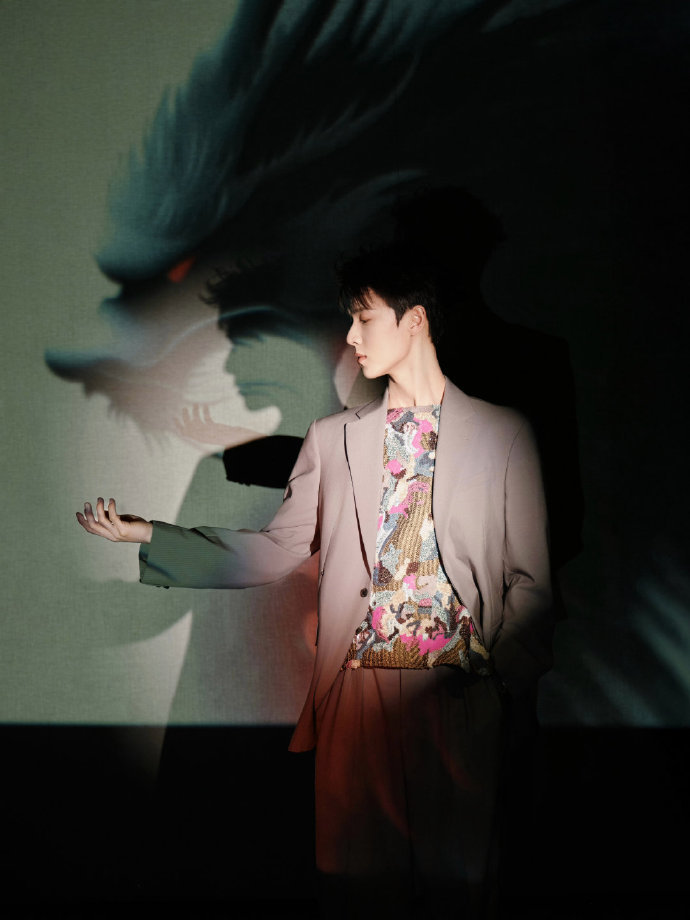 李昀锐鳞光映龙影唱响东方魂李昀锐浙江跨年花色内搭西装造型 李昀锐鳞光映龙影唱响东