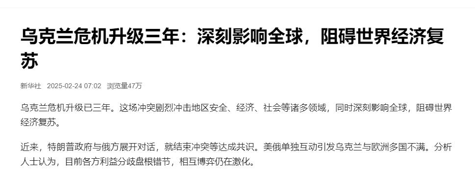 乌克兰简直太冤了!   花了将近四年的时间,硬生生把俄罗斯从一个全球超级大国打成了二流国家,解决了美西方的心头大患,可到头来乌克兰得到了什么?   乌克兰这场仗打得太苦了,四年前谁也没想到,一场边境冲突会变成国家存亡的拉锯战,基辅的决策者或许以为,背靠北约的支持,能像2014年那样逼退俄军,可他们低估了普京的决心,更没料到自己会成为大国博弈的燃料。 战争刚爆发时,乌克兰确实打出了血性,马里乌波尔的钢铁厂废墟里,乌军士兵用反坦克导弹掀翻俄军坦克,全球直播的画面让西方看到抵抗的决心。 但没人算过,这座黑海港口每落下一发炮弹,乌克兰就少了一粒出口的粮食,战前乌克兰小麦出口占全球12%,如今敖德萨港的粮仓被炸毁,运粮船在黑海里被无人机追着炸,2024年的粮食出口量只剩战前的零头,农民看着成熟的玉米烂在地里,因为铁路被炸断,农机没燃料,年轻人都被征去打仗了。 欧洲人嘴上喊着支持,身体却很诚实,2022年冬天,德国工厂因为缺俄罗斯天然气停产,转头就从美国买高价液化天然气,顺带把乌克兰的能源管道当炮灰。 基辅为了保住西方援助,不得不默许俄军控制克里米亚的能源设施,结果自己的核电站因为缺铀燃料停转,哈尔科夫的居民冬天只能烧木头取暖。 欧盟统计局的数字冷冰冰的:欧洲家庭能源账单涨了47%,可乌克兰的GDP直接缩水40%,相当于全国人辛辛苦苦干四年的钱,全砸在战场上了。 最让人心寒的是援助的算计,美国说给6000亿,实际到账不到四成,波兰去年冻结了20亿援助,理由是“怕乌克兰还不起”。 德国承诺的“豹2”坦克砍了一半,理由是“国内库存不够”,乌克兰士兵在前线用二战时期的步枪打仗,西方军火商的股价却蹭蹭往上涨。 洛克希德·马丁的老板在财报会上笑开了花,说感谢乌克兰“激活了产能”,这些钱,最后都变成了基辅街头的征兵广告——18岁的男孩被塞进战壕,60岁的老人被迫拿起枪,因为适龄青年有四成逃去了欧洲。 俄罗斯被拖瘦了吗?确实,三年耗下来,俄军伤亡超过120万,坦克损失比苏联解体时还多,但瘦死的骆驼比马大,俄罗斯把经济拧成了战时模式,军工产能翻了三倍,每月能造300辆坦克。 更绝的是,他们把能源卖到印度、中国,2022年的石油收入反而比战前多了20%,反观乌克兰,全国19%的领土被占,都是最肥沃的黑土地和工业区。 顿巴斯的钢铁厂炸成废墟,扎波罗热的核电站成了烫手山芋,赫尔松的港口停满生锈的货轮,这些地方战前贡献了乌克兰40%的工业产值,现在全成了俄罗斯的“缓冲区”。 乌克兰人不是没算过账,2025年北约峰会上,德国提出“有限停火”,说白了就是让乌克兰割地换和平,泽连斯基在闭门会议上急得拍桌子:“我们用8万条人命守住的马里乌波尔,难道要拱手让人?” 可现实很残酷:全国一半工厂停产,300万难民滞留在欧洲,基辅的学校改成了临时医院,妇产科的婴儿出生率跌到了1.1%——这意味着二十年后,乌克兰可能连种地的人都没有。 最讽刺的是,乌克兰以为在保卫欧洲的安全,结果欧洲在利用他们的苦难,土耳其在黑海收“保护费”,哈萨克斯坦断了铀燃料供应,连摩尔多瓦都逼着用葡萄酒抵债。 欧盟一边喊着“团结”,一边限制乌克兰农产品进口,怕冲击自家市场,波兰农民抗议乌克兰小麦抢生意,布鲁塞尔的政客们只会说“理解,但我们有自己的难处”。 这场战争像面镜子,照出了小国的无奈。乌克兰不是没努力过,他们用血肉之躯拖慢了俄军的脚步,让俄罗斯的全球影响力跌到二流。 可代价呢?20%的国土成了焦土,1/3的人口流离失所,国家主权变成了西方谈判桌上的筹码,基辅独立广场的反战壁画写着:“我们击退了侵略者,却失去了自己的国家。”这句话,道尽了四年血战的荒诞——赢了战役,输了国运,最后连哭的地方都没有。 现在回头看,2022年那个春天,当俄军坦克开进基辅郊外时,乌克兰或许有过一丝幻想:只要撑到西方援军到来,就能像1941年的莫斯科保卫战那样逆转战局。 可他们忘了,当年的苏联有整个国家的工业底子,有盟友的输血,而今天的乌克兰,只是大国棋盘上一颗随时可以舍弃的卒子。四年过去了,棋盘还在,棋子却已经碎成了渣。 信源:乌克兰危机升级三年:深刻影响全球,阻碍世界经济复苏 新华社2025-02-24