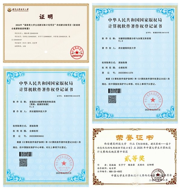 在项目经历方面,作为负责人组织参与“家庭综合能源智能控制器”研究,作为国家级大创项目建立了涵盖研发、生产、使用、回收全流程的碳足迹计算模型,相关成果获得中国大学生计算机设计大赛省级二等奖并取得良好结项。