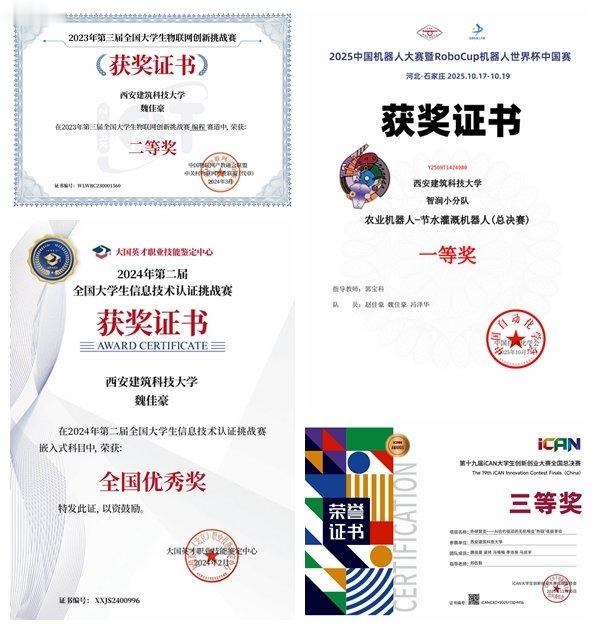 大学期间,深度积极参与各类专业竞赛与科研项目,累计斩获国家级奖项4项、省级奖项10项:主导“基于用户行为分析的智能空调自适应调节系统”项目,通过采集100+用户的使用数据,运用机器学习算法构建个性化温控模型,使空调能效提升15%,该项目荣获2023全国大学生物联网创新挑战赛全国二等奖。