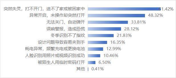 61.42%的受访者遇到过智能门锁突然失灵导致打不开门的情况;