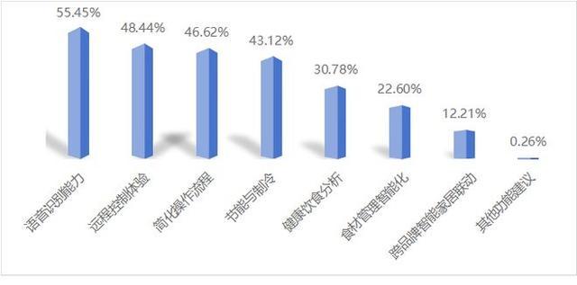 55.45%的受访者希望智能冰箱优化语音识别能力,通过更精准、更灵敏的语音控制,摆脱烦琐的手动操作;