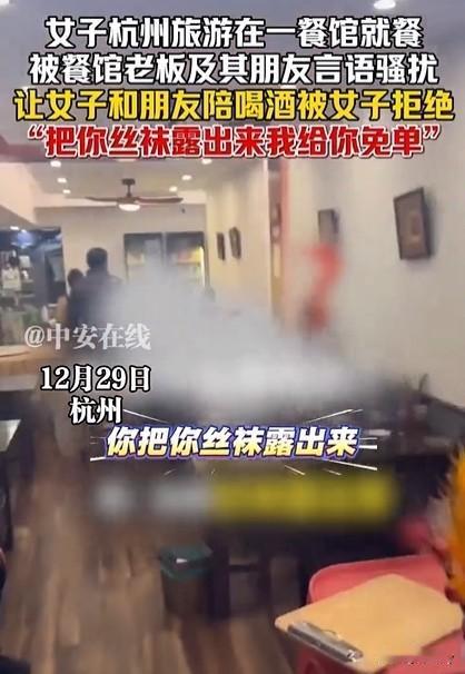 女子和朋友到杭州游玩,在一家面馆吃饭时被面馆老板的朋友们调侃! 女子的邻桌坐着这家店的老板和他的朋友们,其中一个男子大声喊着女子的朋友说:过来陪我们喝一杯! 女子和朋友当场婉言拒绝说自己不会喝酒,男子却还不依不饶,对两名女子评头论足,一会儿说两个人长得一般般,一会儿又说长得还行声音非常大,整个店都能听得见, 而店老板坐在那里就像没听见一样一声不吭!女子实在生气准备结账走人,没想到那个邀请陪喝酒的男子又大声地喊起来:把你丝袜露出来,这顿饭我给你免单! 女子当即拿起手机开始录像,男子满不在乎:录就录,发抖音我都不怕! 喝点酒就不知道自己是谁了!目前男子已被警方行政拘留!女子说,这件事虽然会花费时间和精力,但是希望每个人一点点的小努力可以让这种事情少发生!