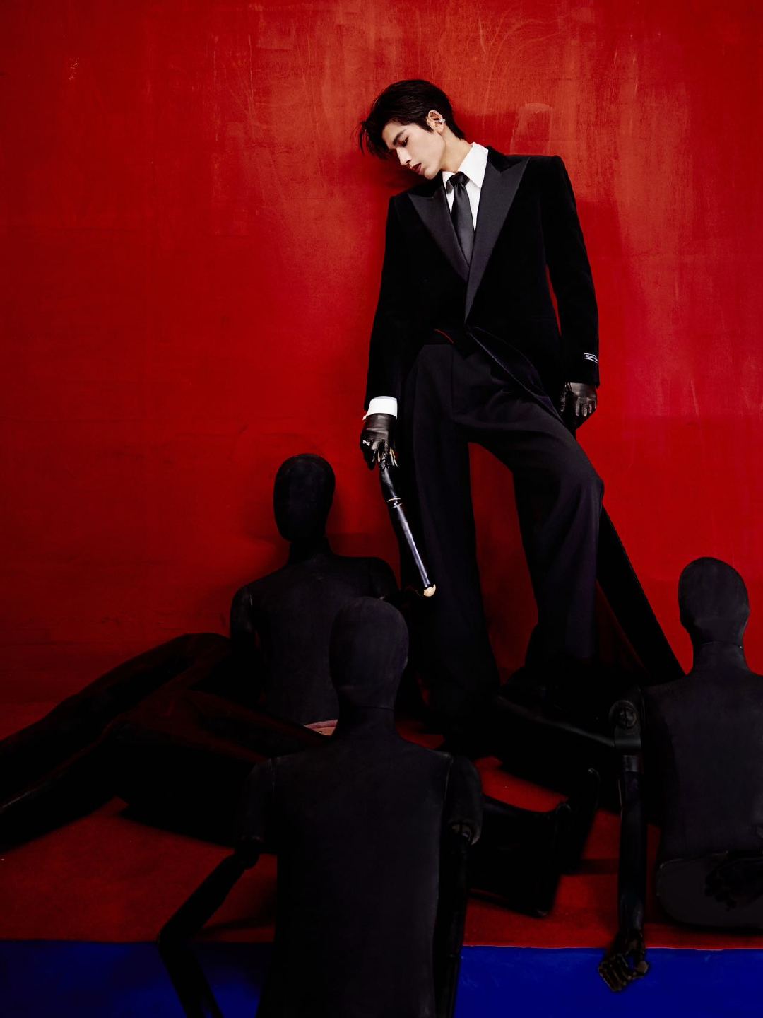 张凌赫这套造型必有高人指点 权杖才是灵魂道具!当金属冷光掠过皮手套,当西装革履的