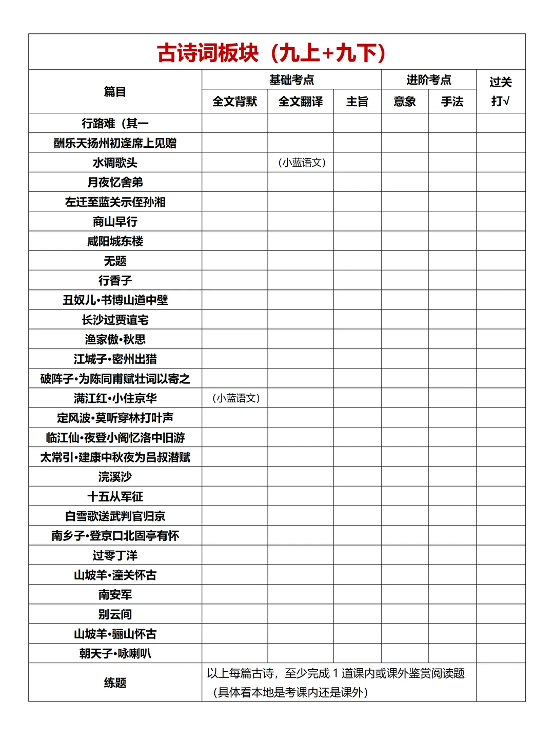 ✅ 覆盖 九 上 + 九 下,七大必考专题:基础、综合性学习、古诗词、文言文、名著阅读、阅读理解、作文