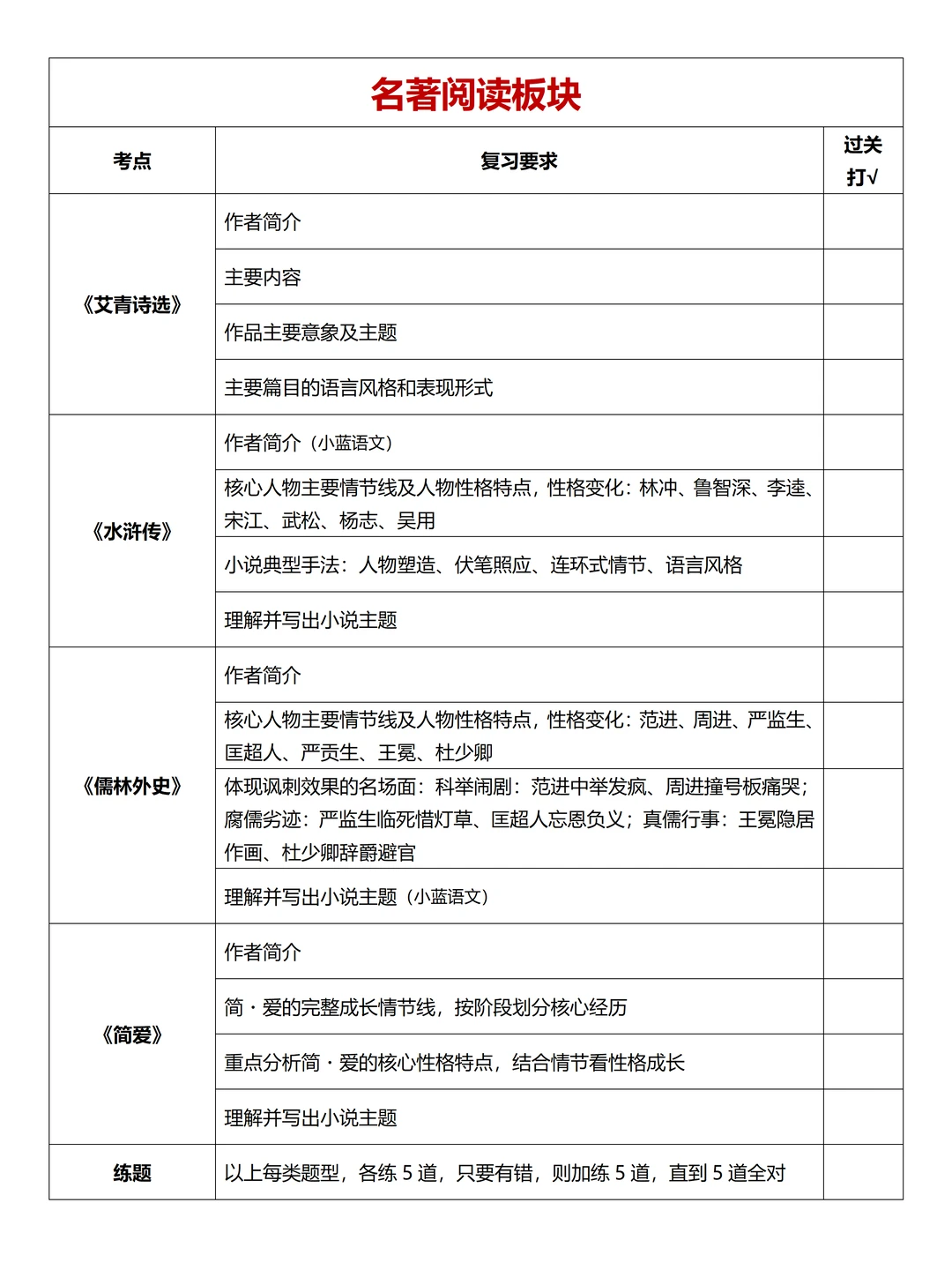 [二R]名著别死记,抓核心人物 + 典型情节即可,自查表里已划好重点;