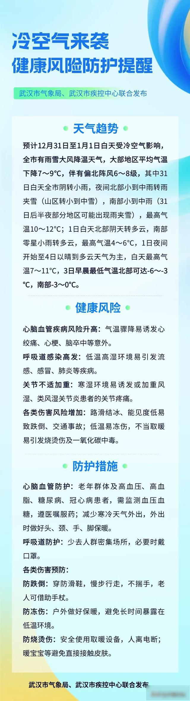 跨年强冷空气来了,今天(12月31日)至2026年1月1日,我市会遭遇大风降温雨雪天气过程,在此提醒您做好防寒保暖措施,随身携带雨具。
