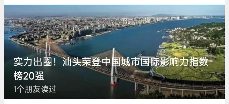 汕头登顶中国城市20强! 《中国城市国际网络形象指数报告》 正式发布,汕头打败上