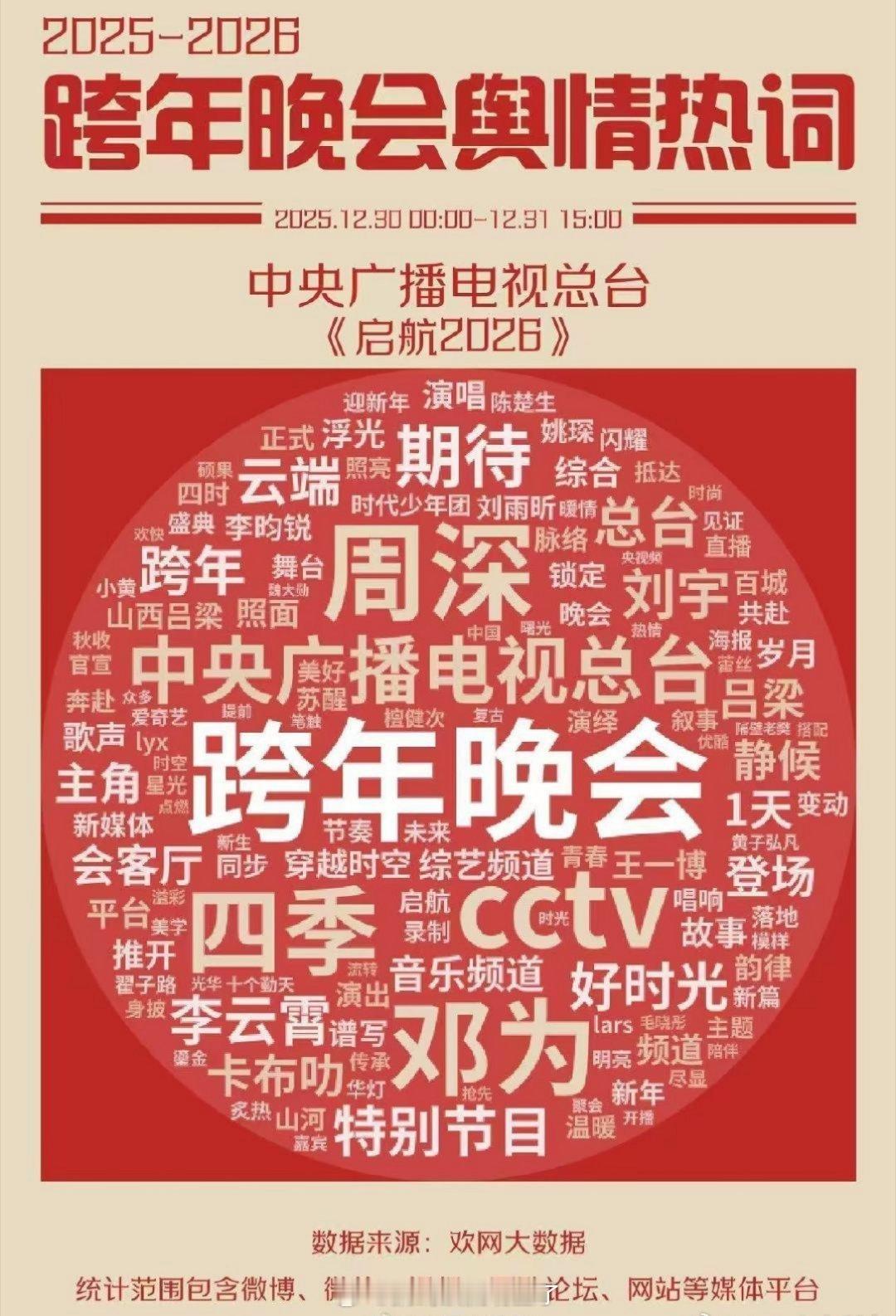 恭喜邓为央视跨年晚会《想某人》获得同时段全国频道排名TOP1,收视率峰值高达6.