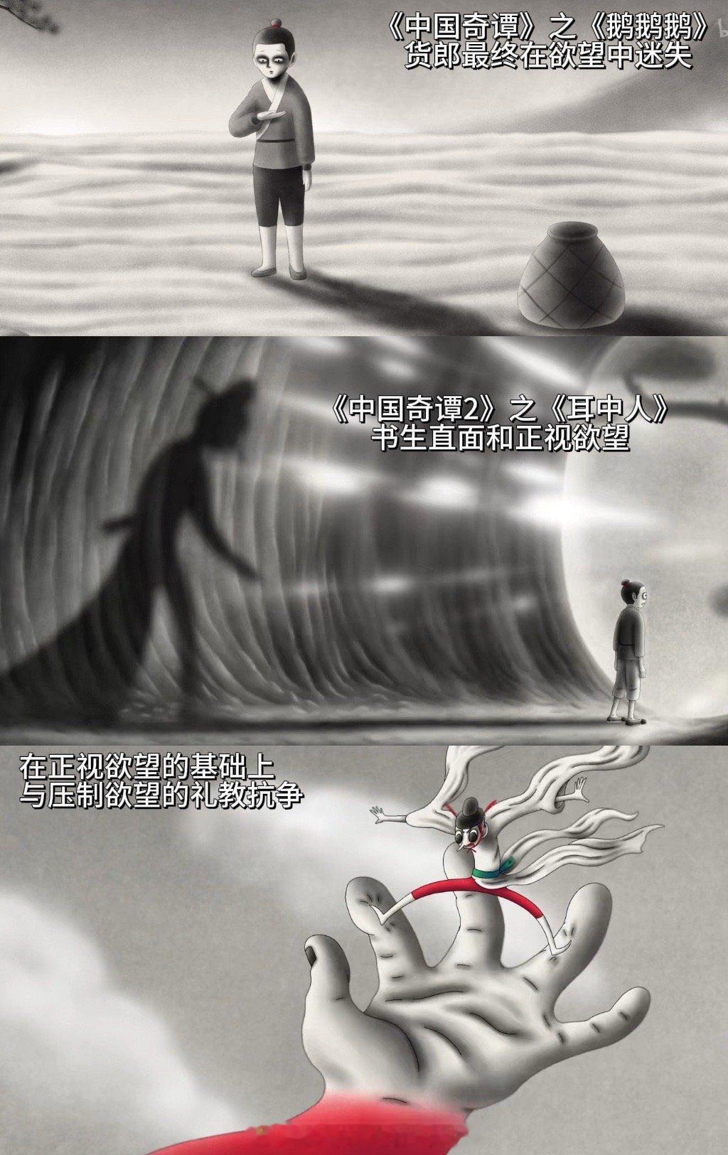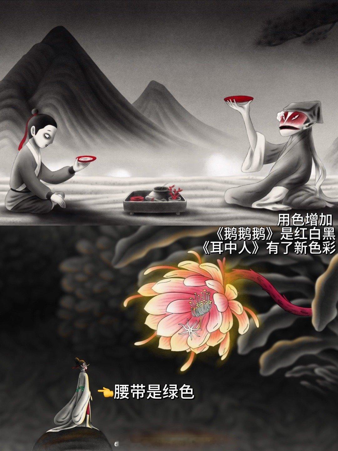 中国奇谭2今日开播还是那个靠谱的中国奇谭 准点打开了《中国奇谭2》,本《鹅鹅鹅》狂粉直奔《耳中人》,细糠吃得一本满足,看到了不一样的欲望幻境:-《鹅鹅鹅》是口中“套娃”,一层一层剥开人心;《耳中人》是耳内生妖,欲望以一种完全不同的方式得以具象化。-《鹅鹅鹅》的货郎看到的是狐狸书生、兔妖、猪妖、鹅娘等欲望投射;《耳中人》的书生在“耳中人”的身上看到的则是另一个自我。-《鹅鹅鹅》的货郎最终在欲望中迷失,让人看清欲壑难填的真相;《耳中人》则强调对欲望的直面、正视,甚至耳中人也在勇敢地与象征“存天理灭人欲”的神掌对抗,这个内核很不一样,还挺超前的。-从《鹅鹅鹅》到《耳中人》,导演似乎更懂如何拿捏感官了,视觉上增添了色彩,听感上也似乎有了asmr纯享意境,戴耳机看体验很是惊艳。现在就是忍不住在《鹅鹅鹅》和《耳中人》之间反复穿梭停不下来,只希望这个奇谭更新快点,赶紧把下一集抬上来,下个周四继续爱信等。