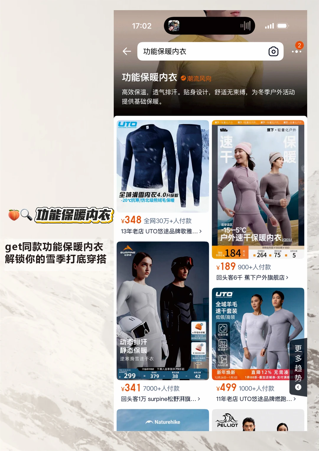 🍑🔍“功能保暖内衣” get[同款R]同款,入手滑雪打底层