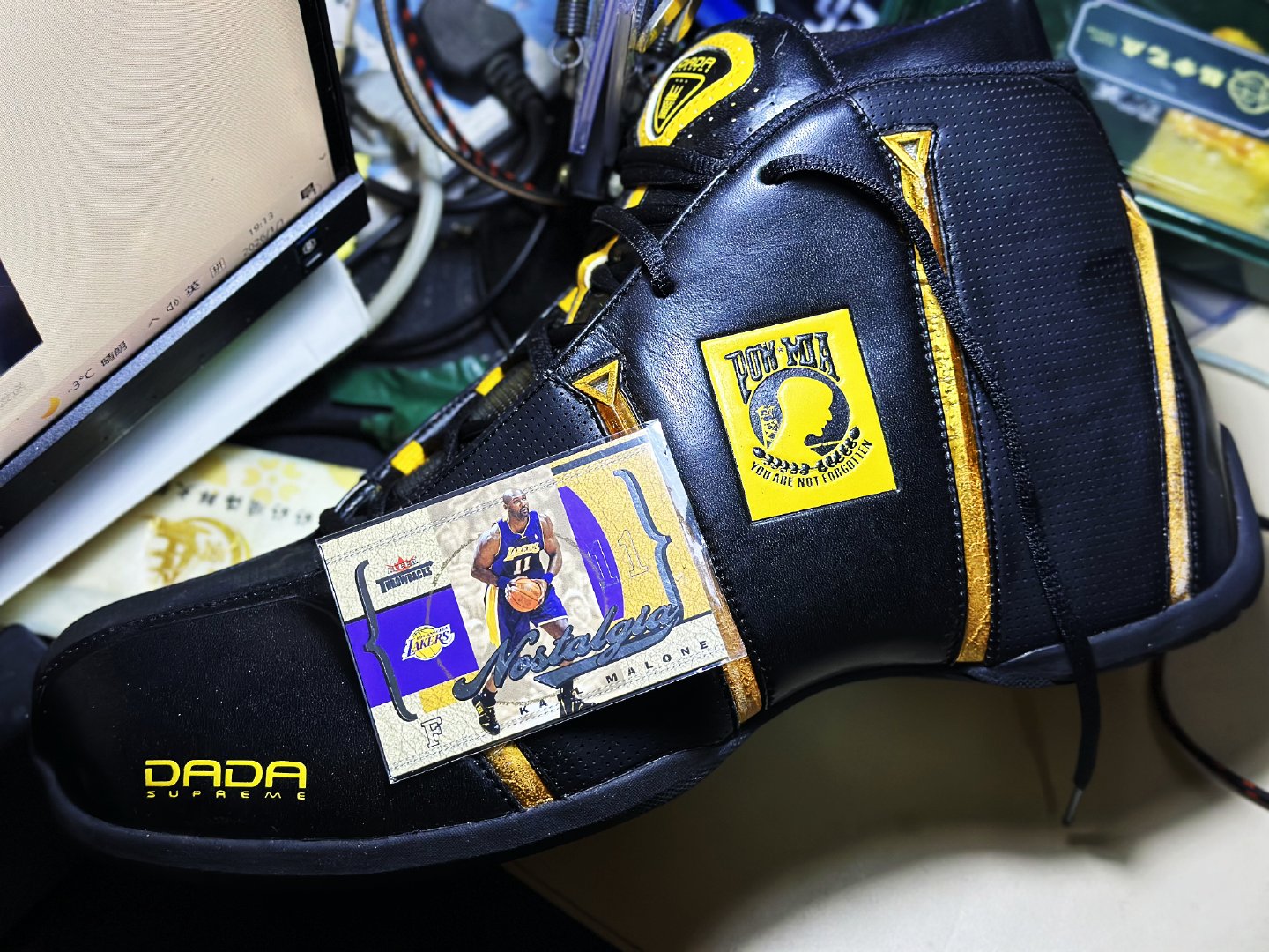 在一个卖家那里累积的小半年的卡片 今天mail day了 希尔的几张都是Fila GH4 手里没有PE 但是有市售 GH4是少见用PU中底的FILA鞋 几年前看底已经碎碎的了KG这张球皮设计好看 穿的Jumpman Pro ;艾弗森大学穿Concord 不知道怎么买了俩.弗朗西斯这个发过了 看见原年的穿ATR 2nd Comming又买了一张;哈达威这也发过了 AIR FLIGHT DETERMINATION;另一张Penny 穿的贝克的鞋 Jumpman Vindicate;卡特太极也是看见清晰的再来一张奥尼尔 年轮那张原年的好少见, 拍的时候还比Ebay便宜不少 号称丑男 的约什霍华德 试了一手就拍到了;那几张球衣就是想看看原年球衣卡实物 迈尔斯那张设计真好;穆迪埃没打出来真好 哈哈 切到赞助商logo的80多吧 我第一张切到赞助商的卡 都是小卡买着玩马龙这个预告一下 这张到手 给自己收藏的pe配张卡 下面要写 马龙和DaDa了 鞋控的日常