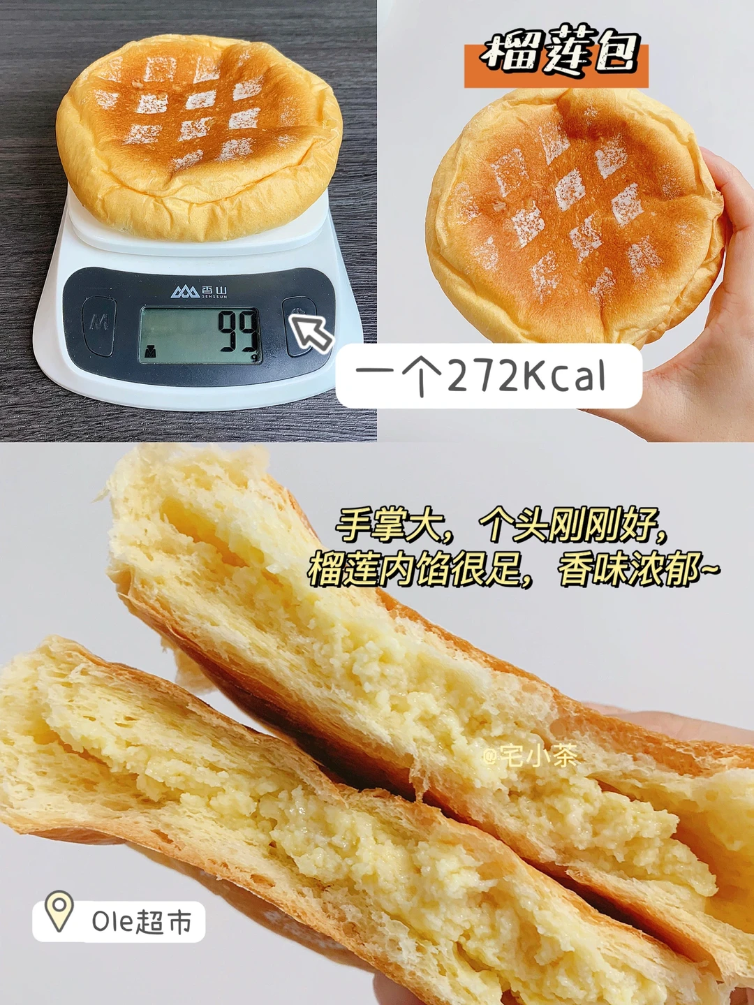 🔸手掌大,个头刚刚好,榴莲内馅很足,香味浓郁~