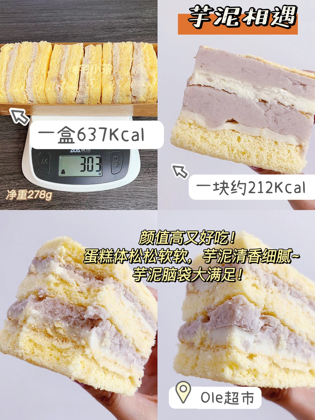 🔸不愧是Ole镇店之宝,颜值高又好吃!蛋糕体松松软软,芋泥清香细腻~芋泥脑袋大满足!