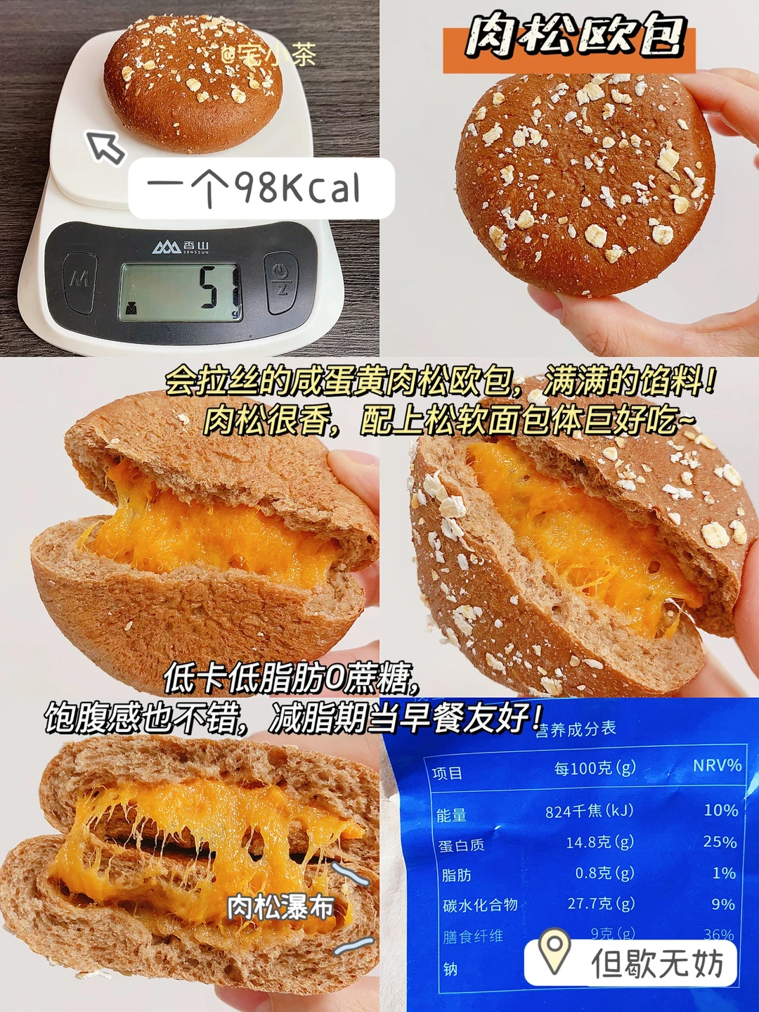 低脂肪0️⃣蔗糖,热量在肉松欧包里可以说是巨低了,减脂期当早餐友好!