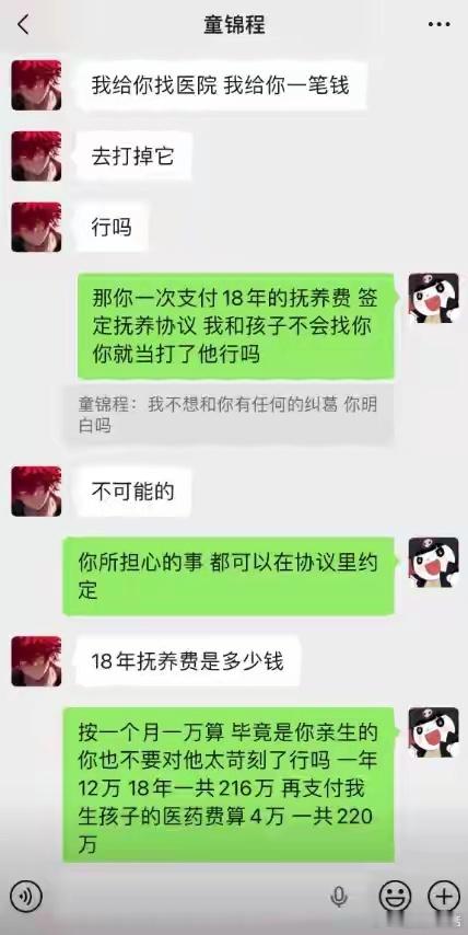 童锦程私生子曝光,被女方索要220万抚养费,聊天记录信息量太大童锦程